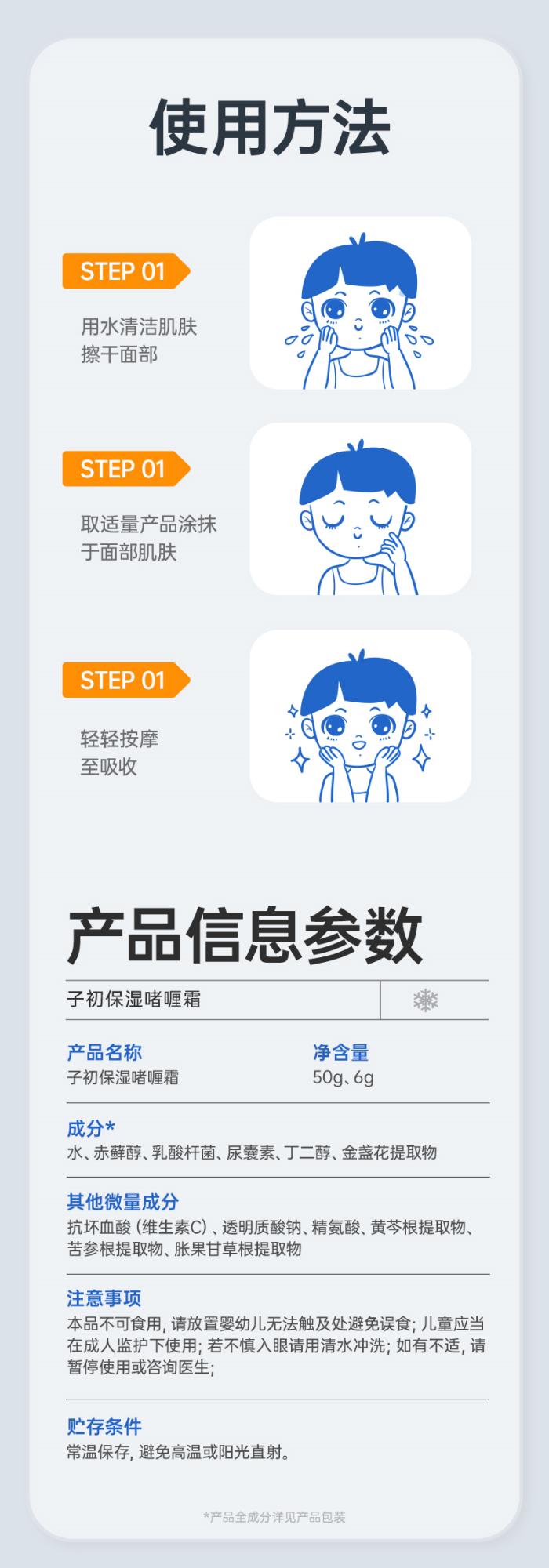 商品名称:【品牌直供】子初儿童面霜啫喱春夏季润肤乳新生婴儿擦脸霜保湿补水宝宝冰沙霜50g