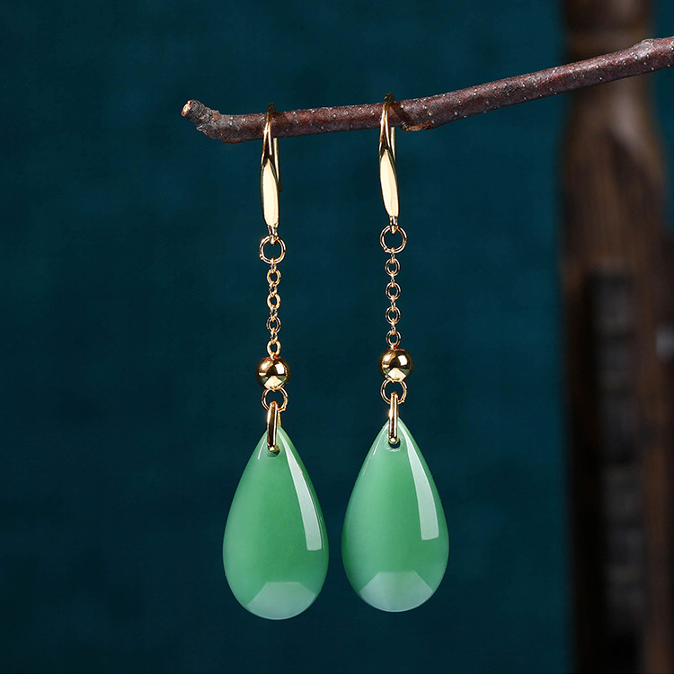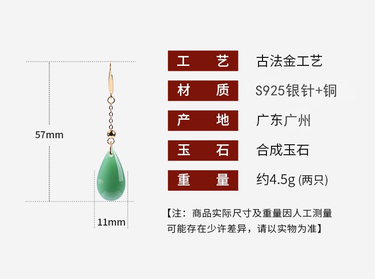 商品名称:彤彤兔 S925银针民族风手工耳饰阳绿水滴合成玉石耳饰耳钩