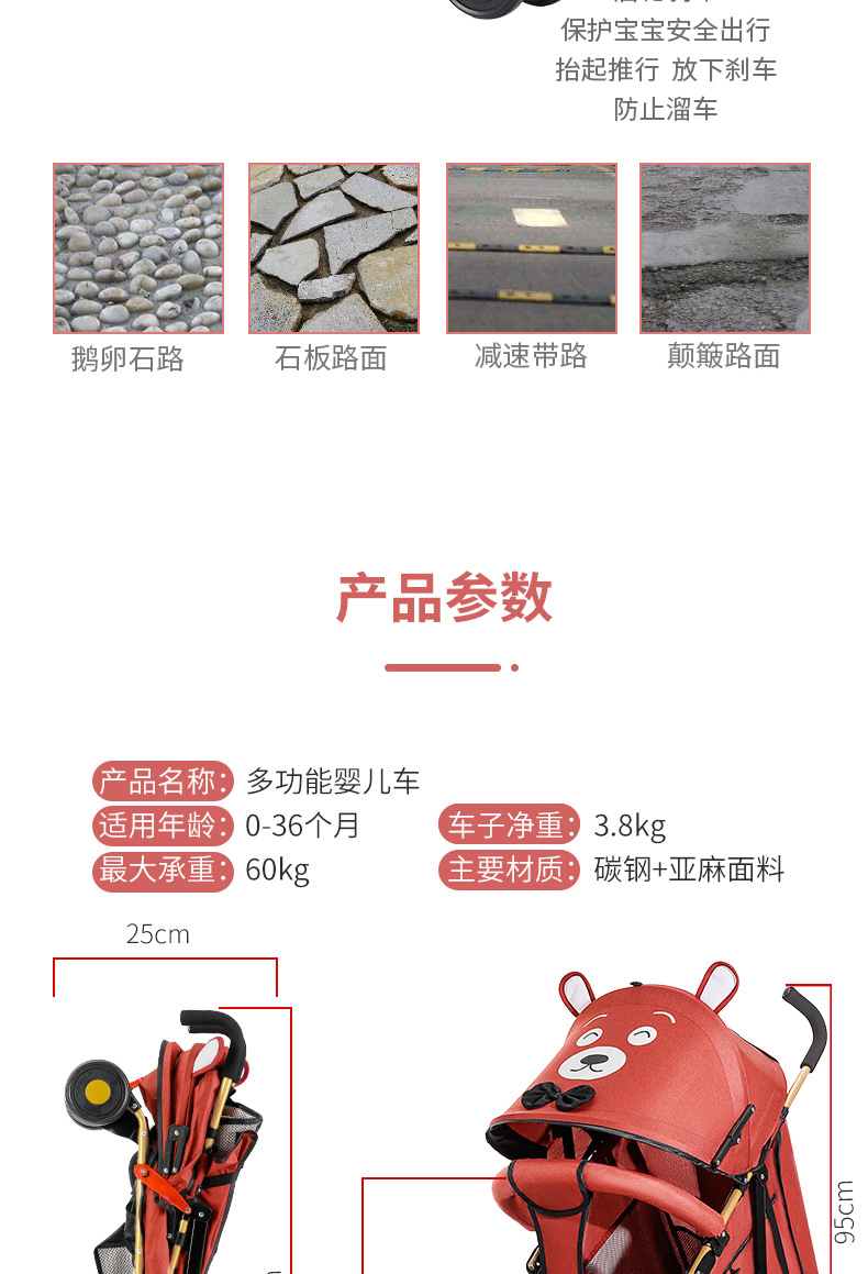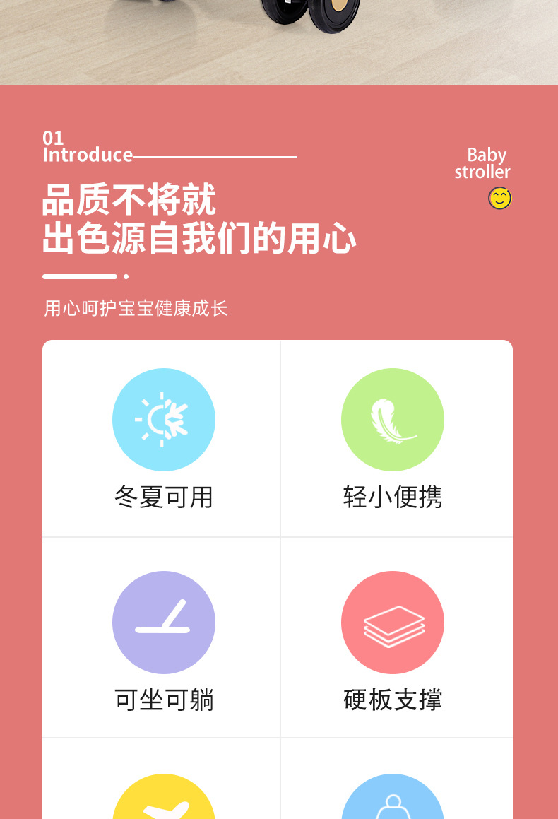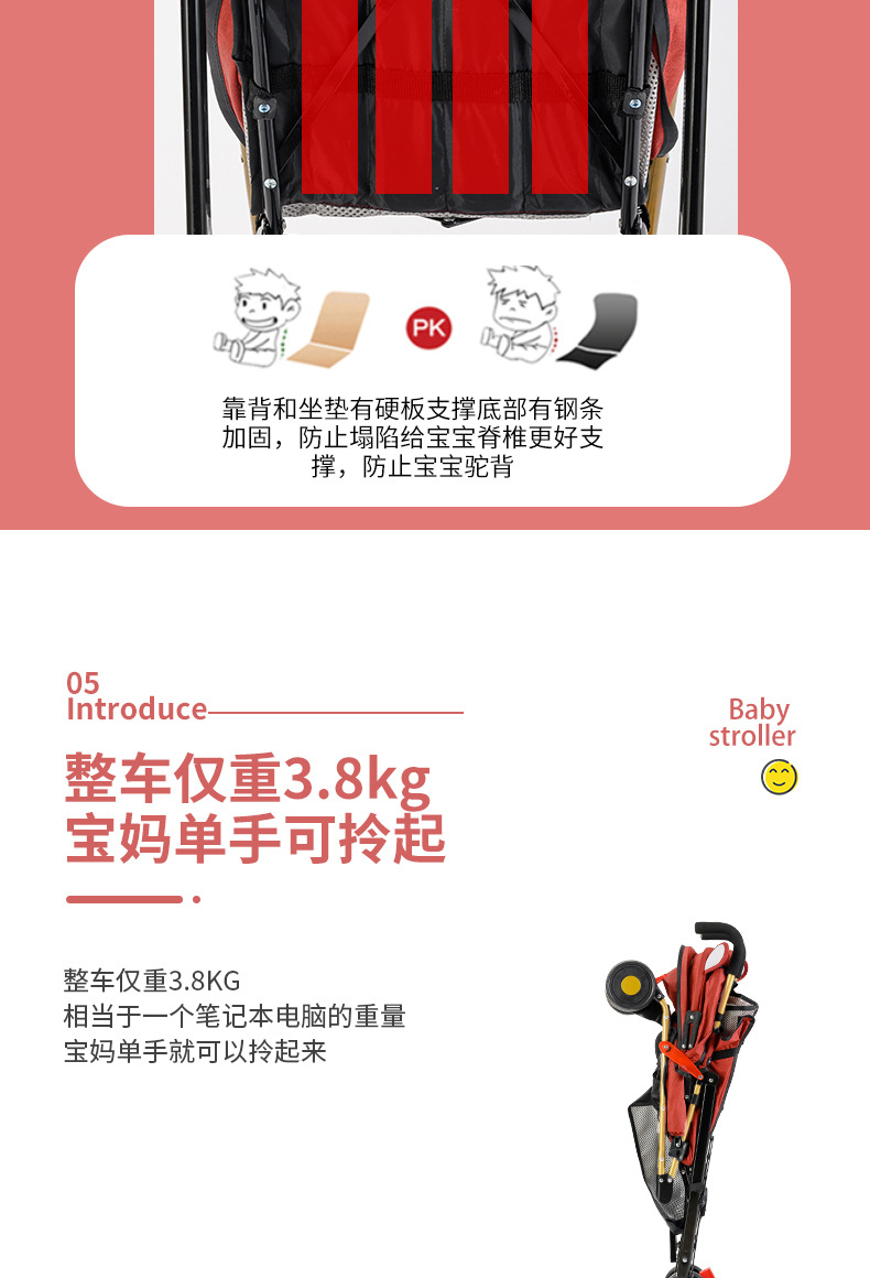 商品名称:兔小迪推车可坐可躺宝宝轻便折叠简易 儿童溜娃便携式伞车手推 车
