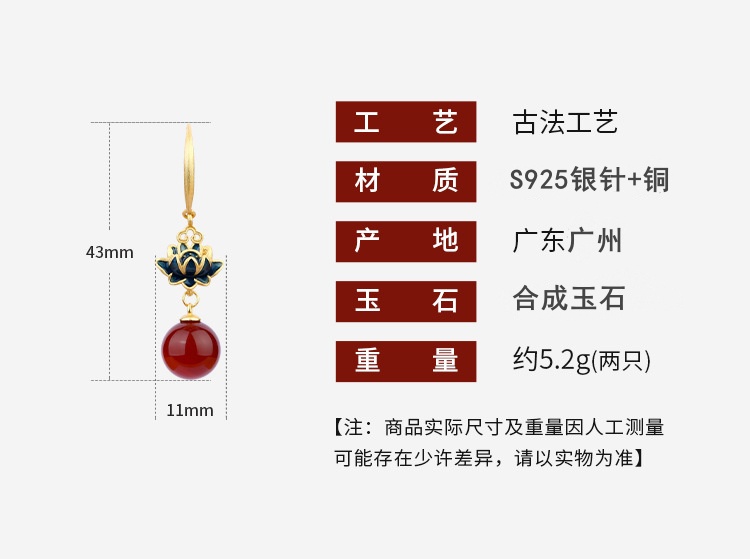 商品名称:彤彤兔 新中式国潮风配饰耳钉古装旗袍汉服配饰古风好运莲莲合成玉石耳环