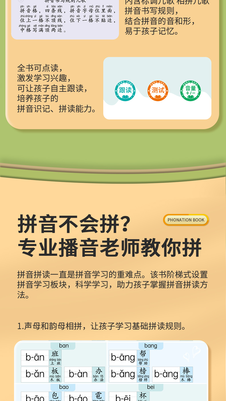 商品名称:汉语拼音拼读训练点读发声书会说话的早教有声书读物幼小衔接发音教材拼音专项训练