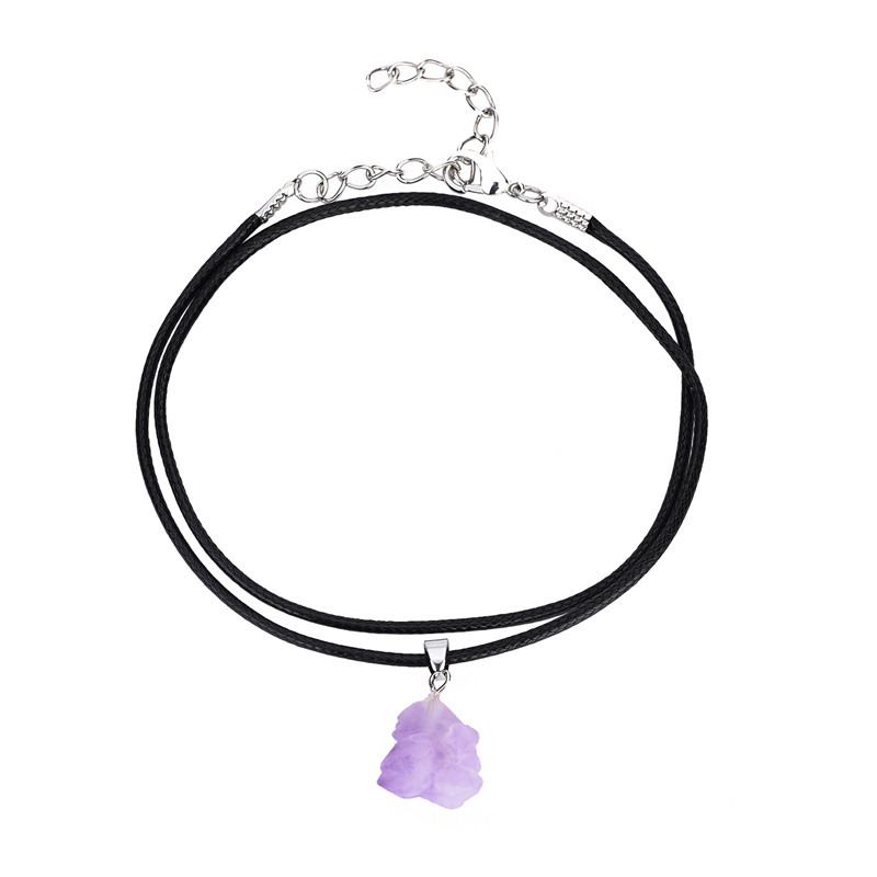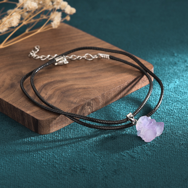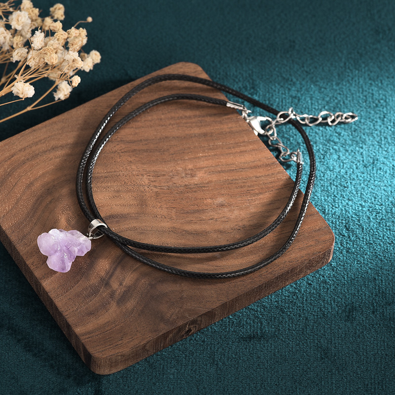 彤彤兔 天然紫不规则形状水晶合成玉石吊坠项链女编织手绳款手办