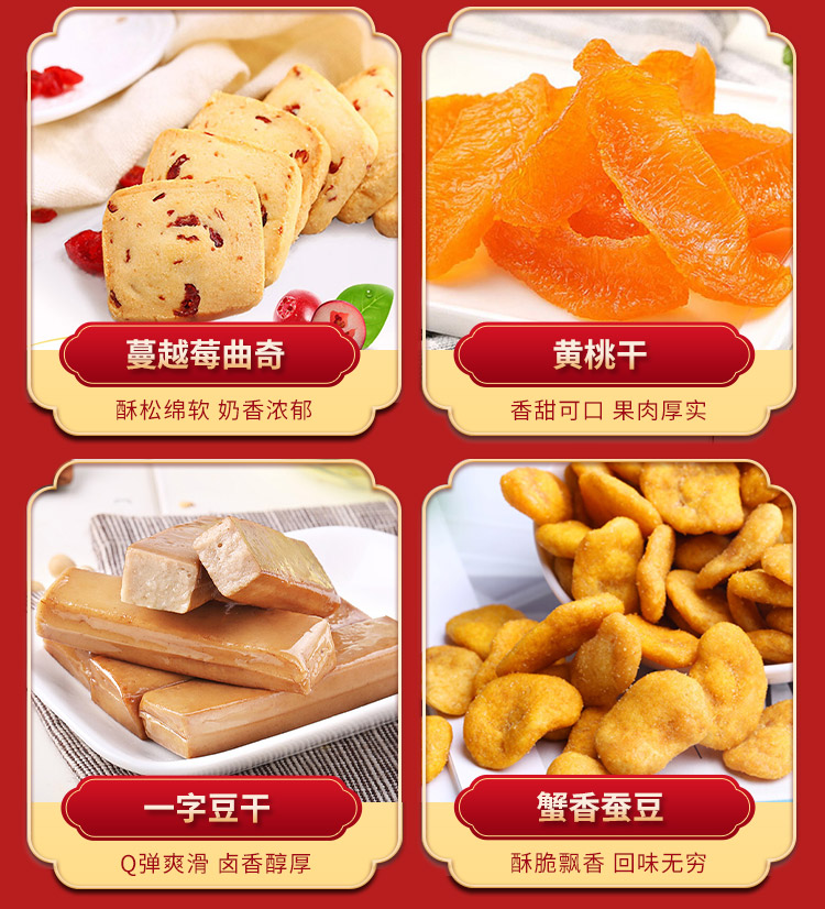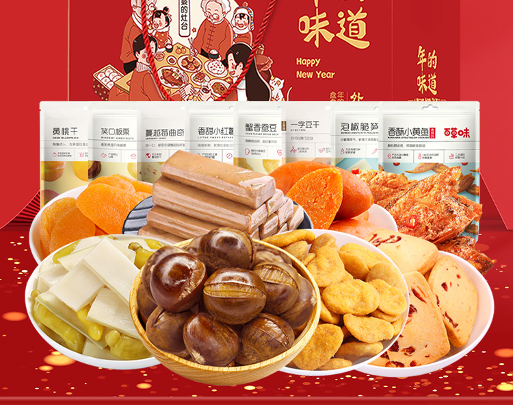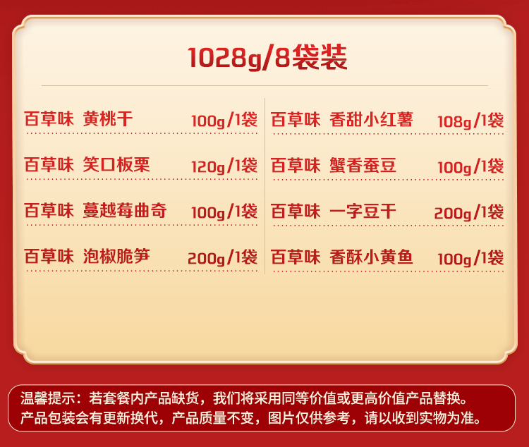 商品名称:百草味 经典福礼年的味道1028g/8袋装 年货坚果零食大礼包组合整箱网红健康小吃休闲食品