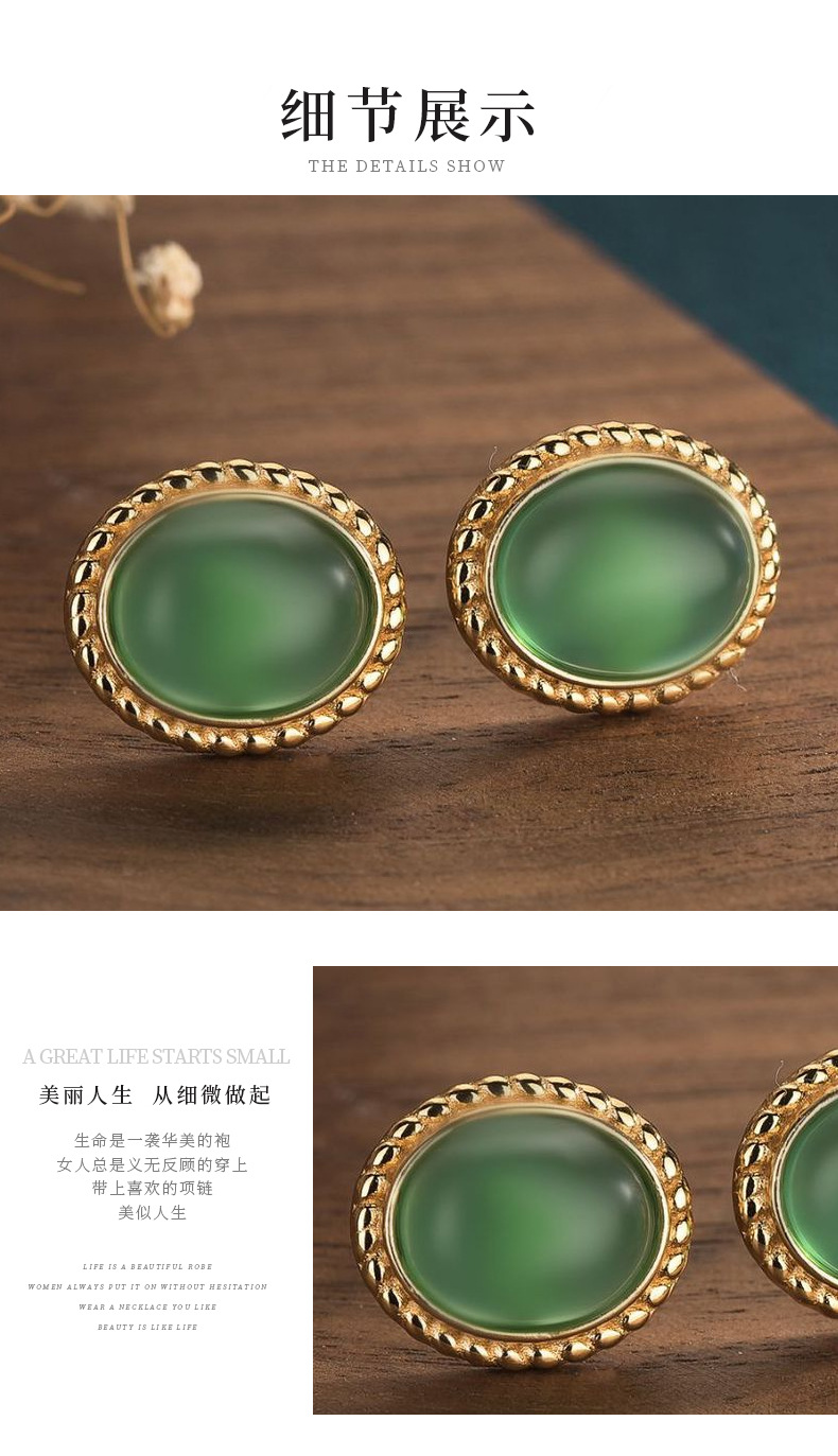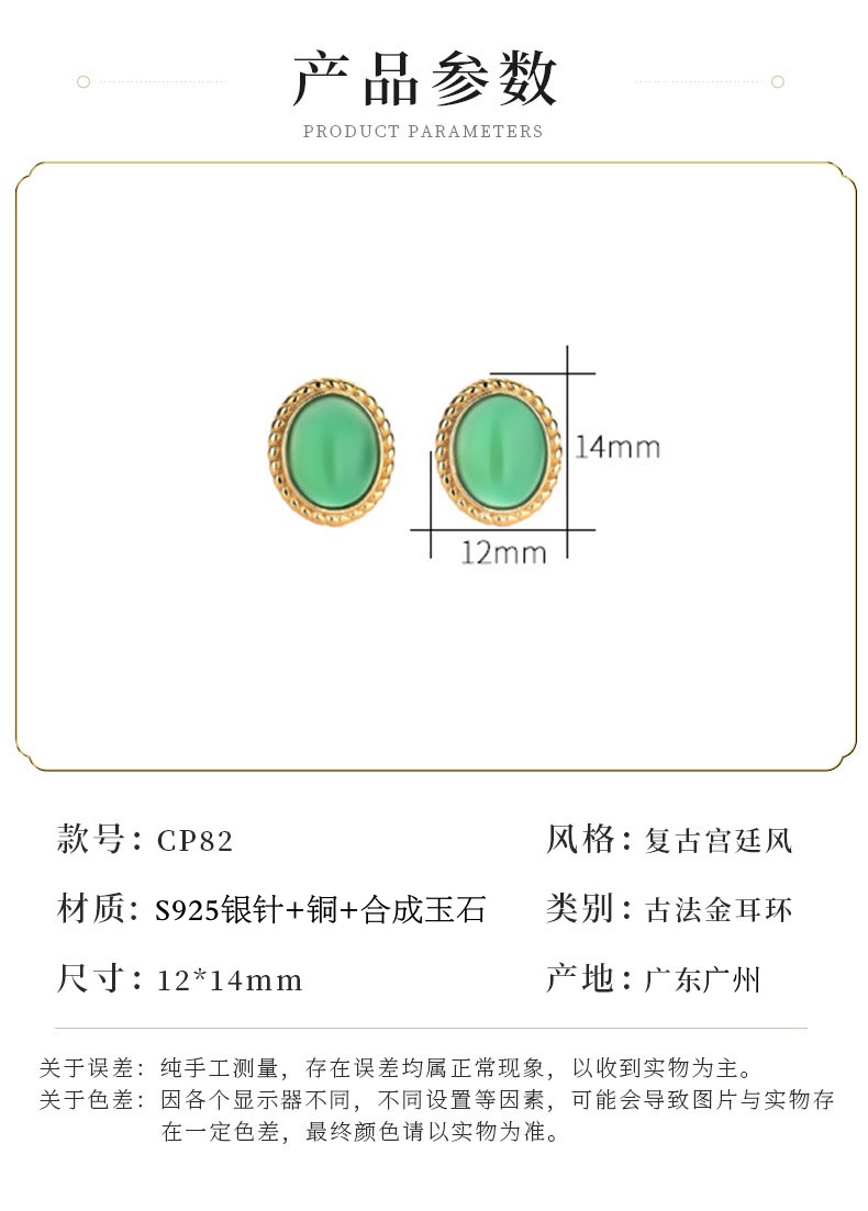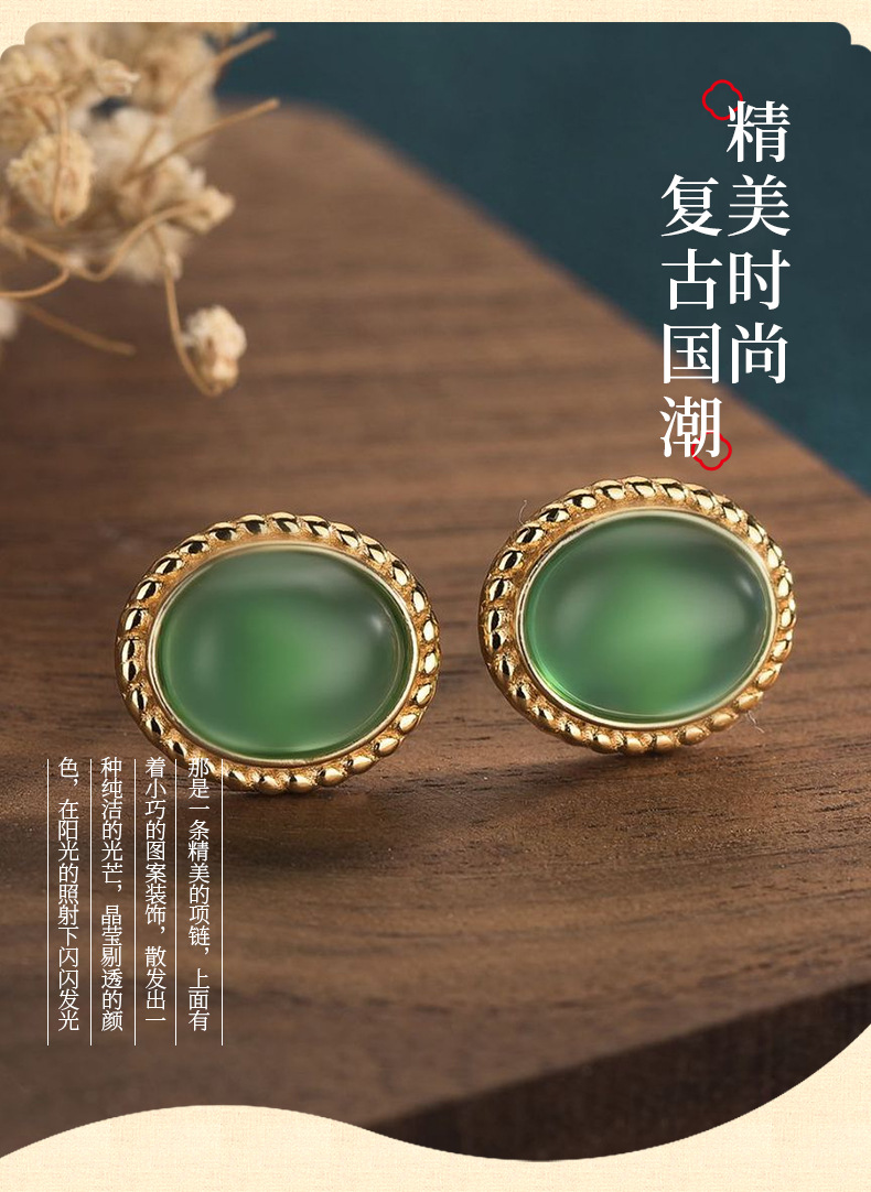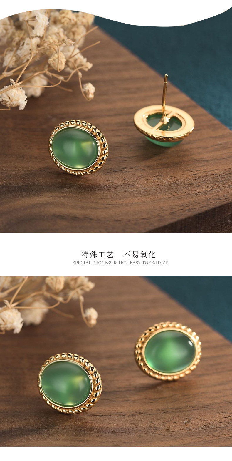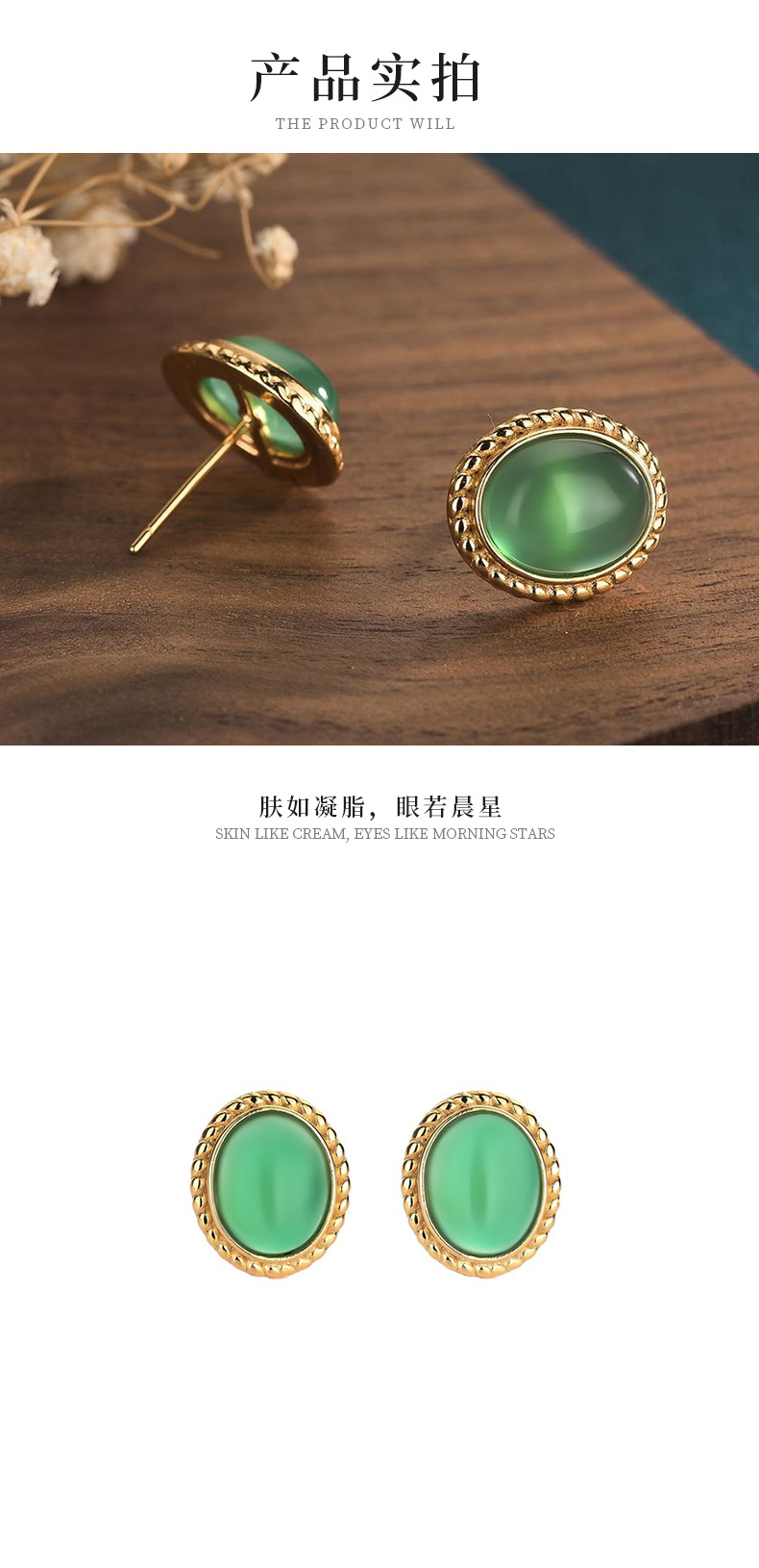 商品名称:彤彤兔 复古式国风宫廷气质ins耳钉女铜镀金镶合成玉石碧玉耳环耳饰