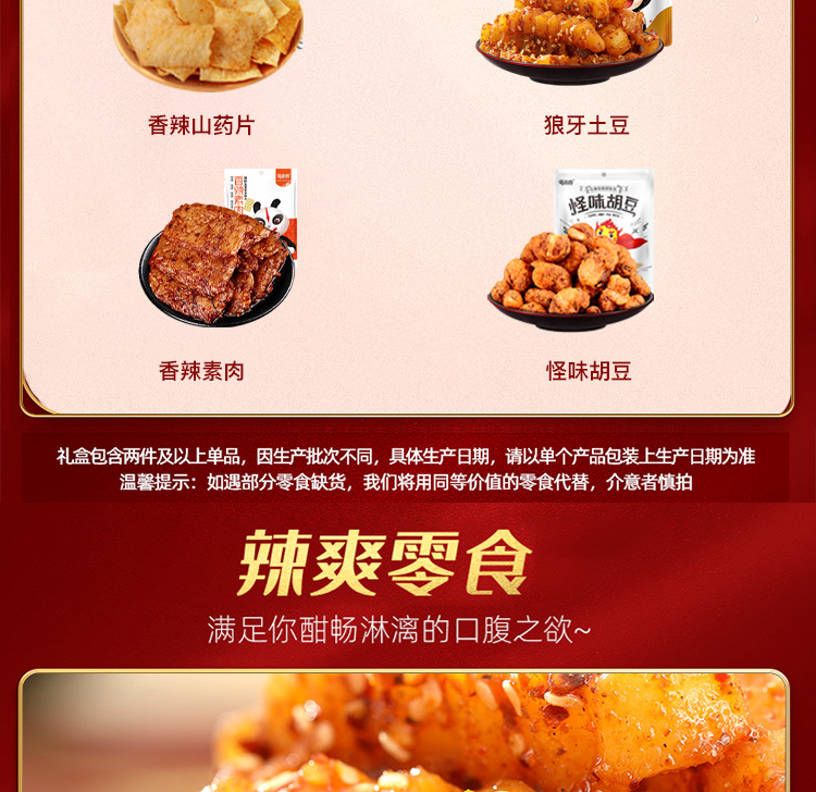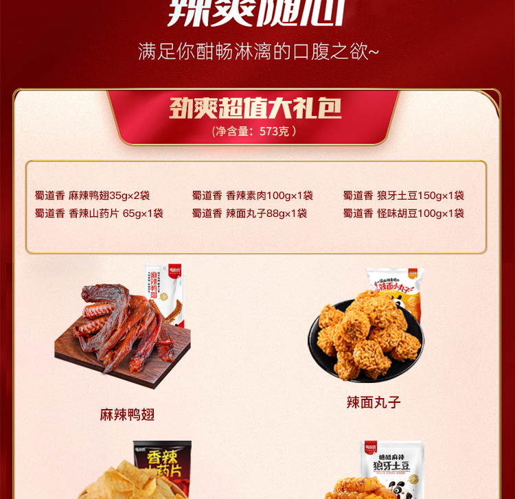 商品名称:蜀道香 鸿运小礼礼包/礼盒573g 天椒辣条拉面丸子吃四川成都特产小吃礼盒