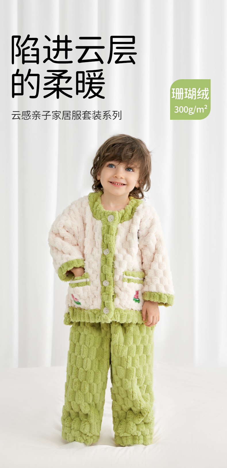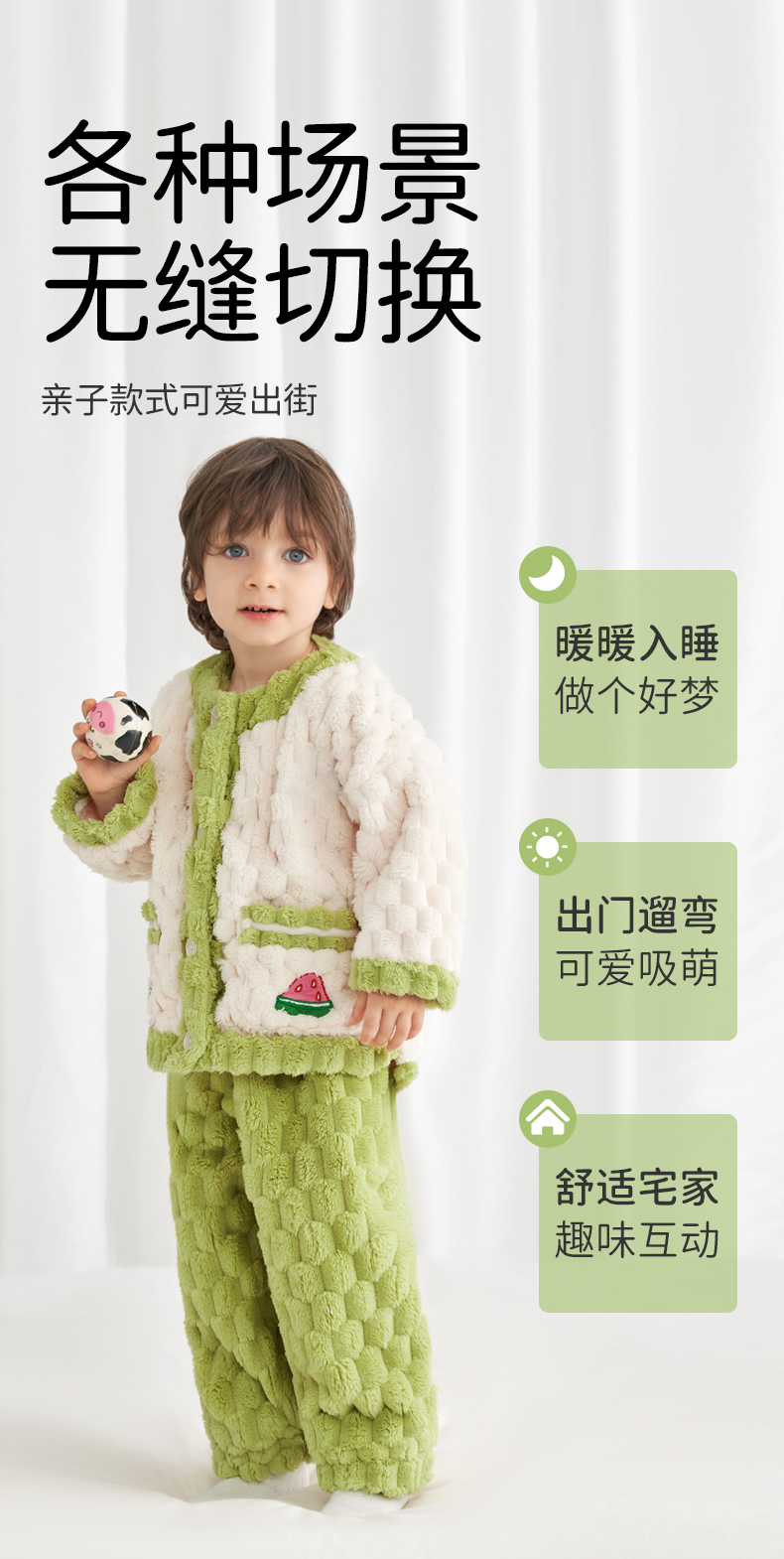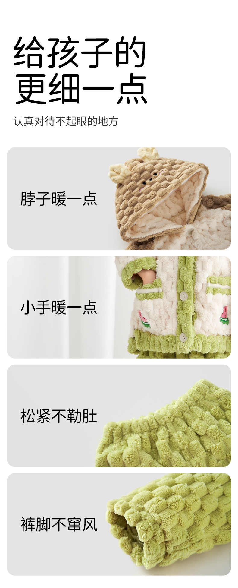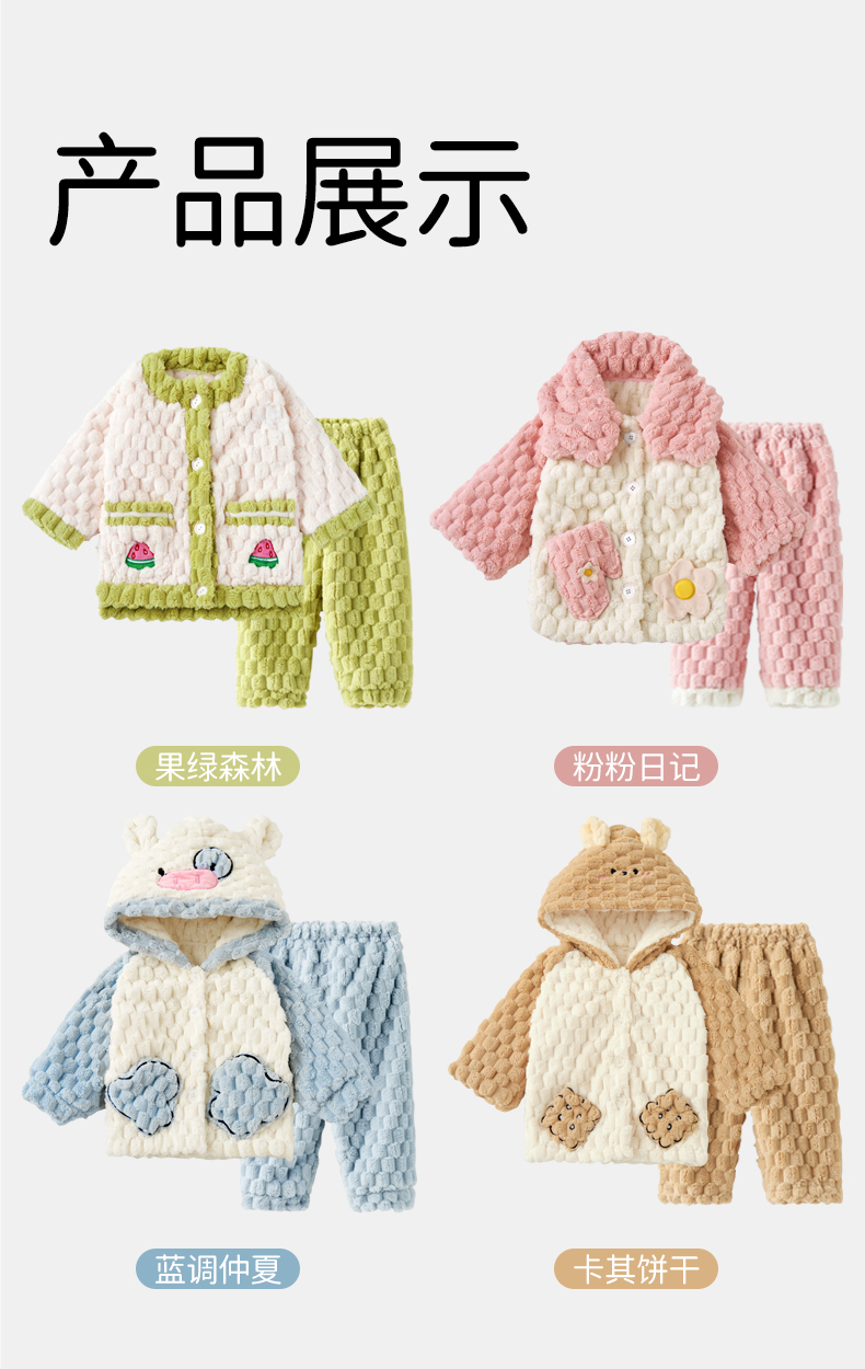 商品名称:欧孕珊瑚绒儿童睡衣2023秋冬新款男童女童宝宝保暖家居服加厚套装