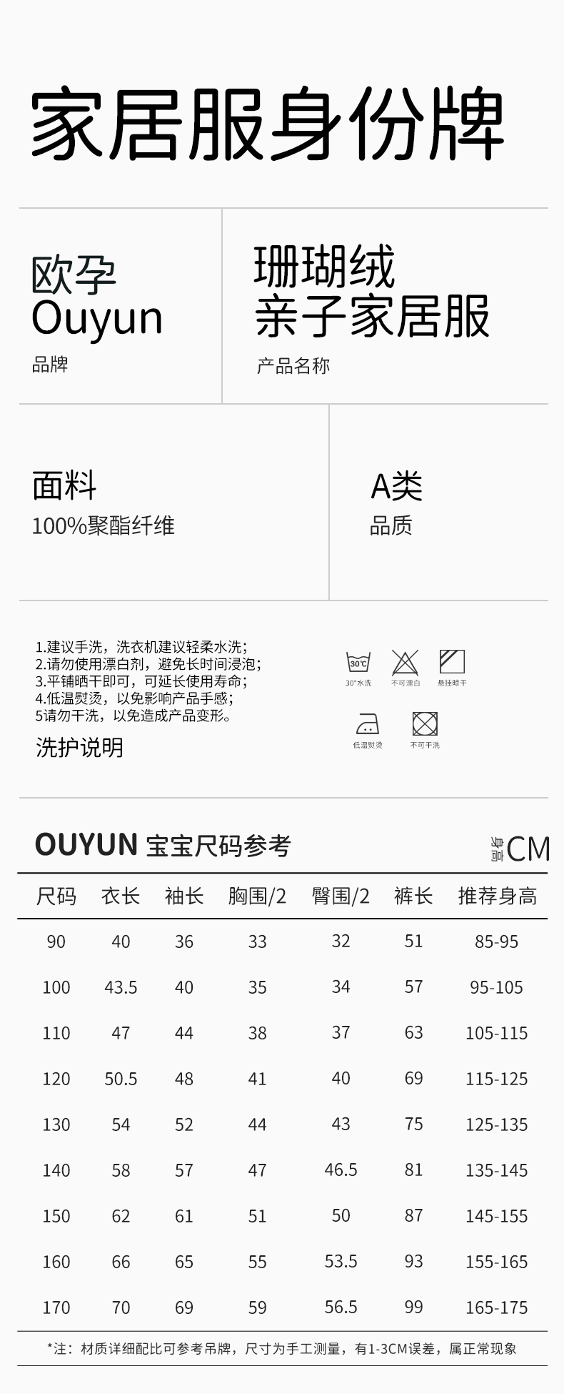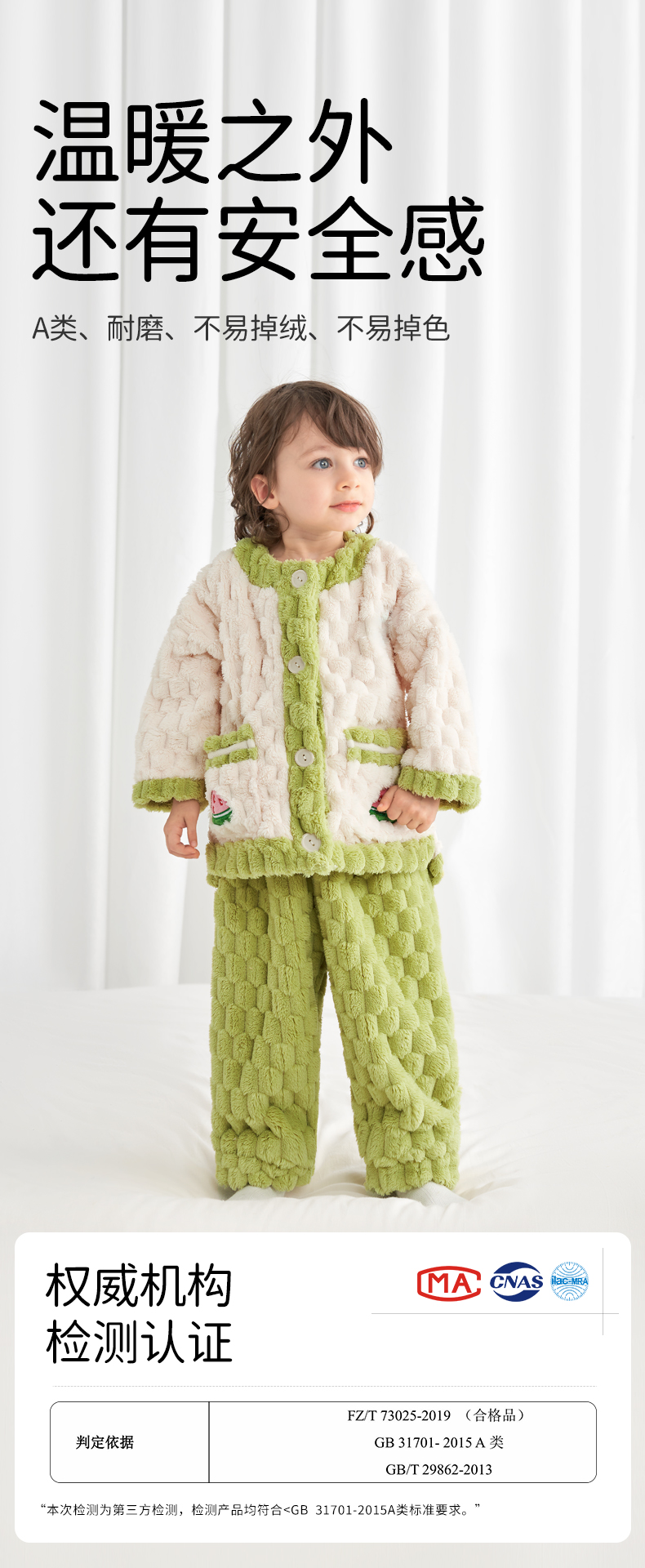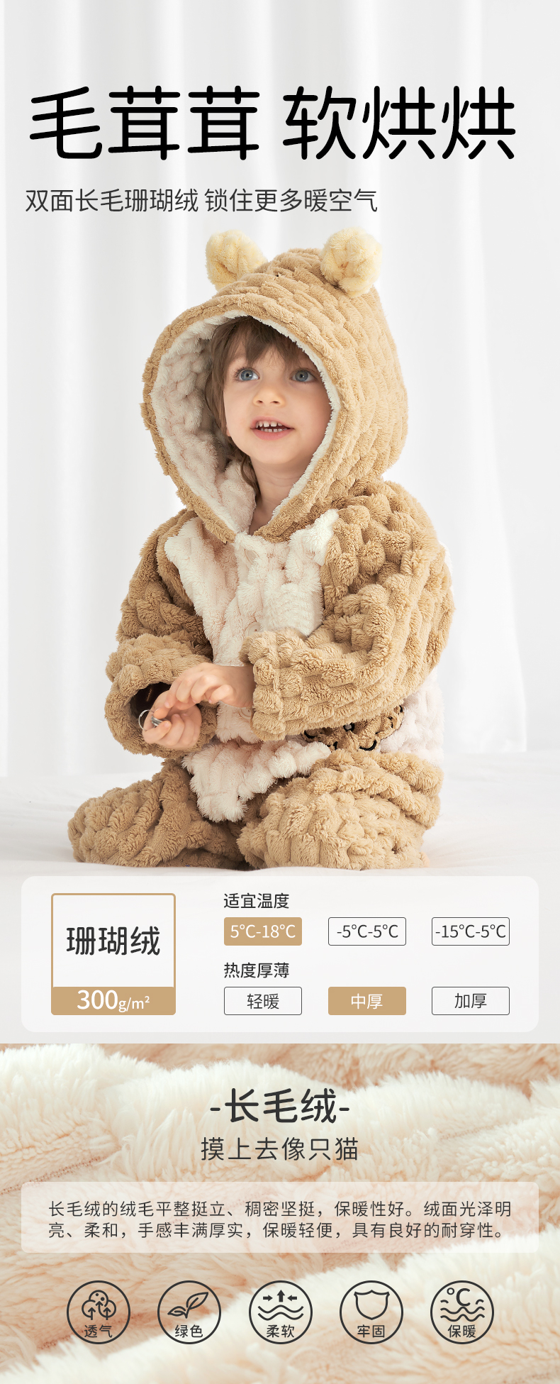 商品名称:欧孕珊瑚绒儿童睡衣2023秋冬新款男童女童宝宝保暖家居服加厚套装