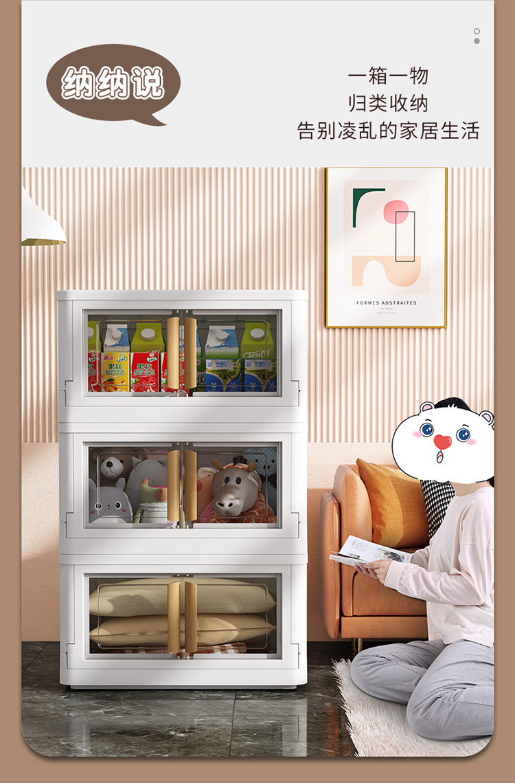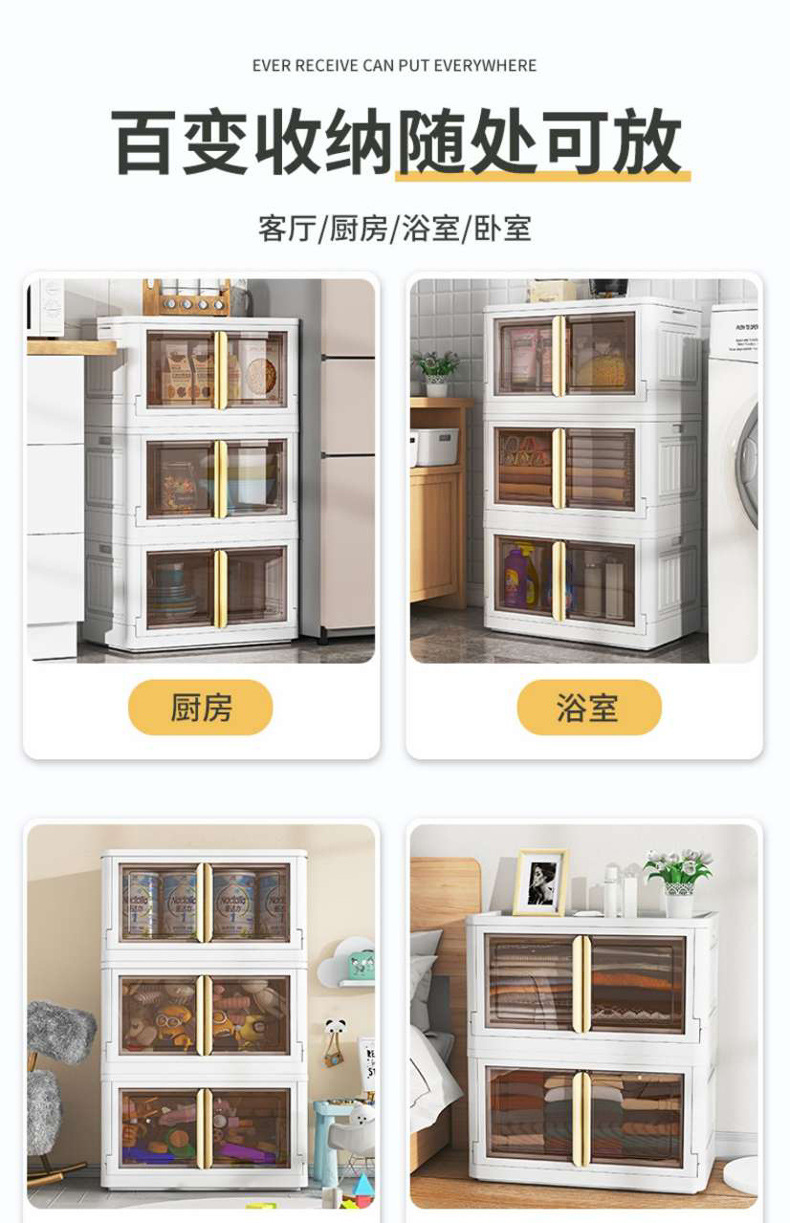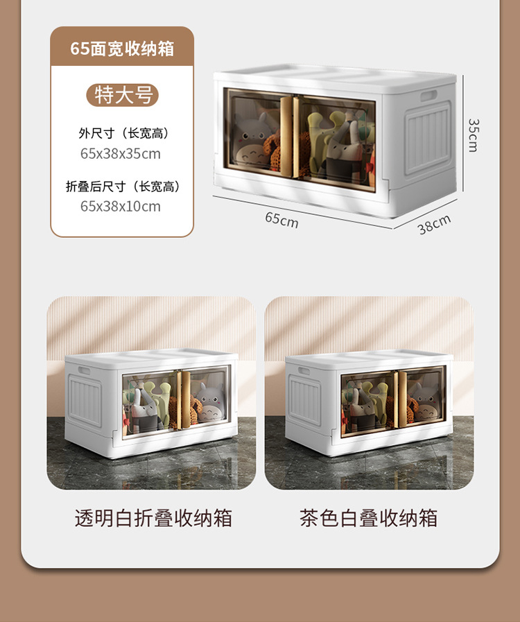 商品名称:透明折叠收纳箱家用衣服整理箱加厚玩具碗碟收纳柜零食收纳储物柜55面宽带滑轮可移动