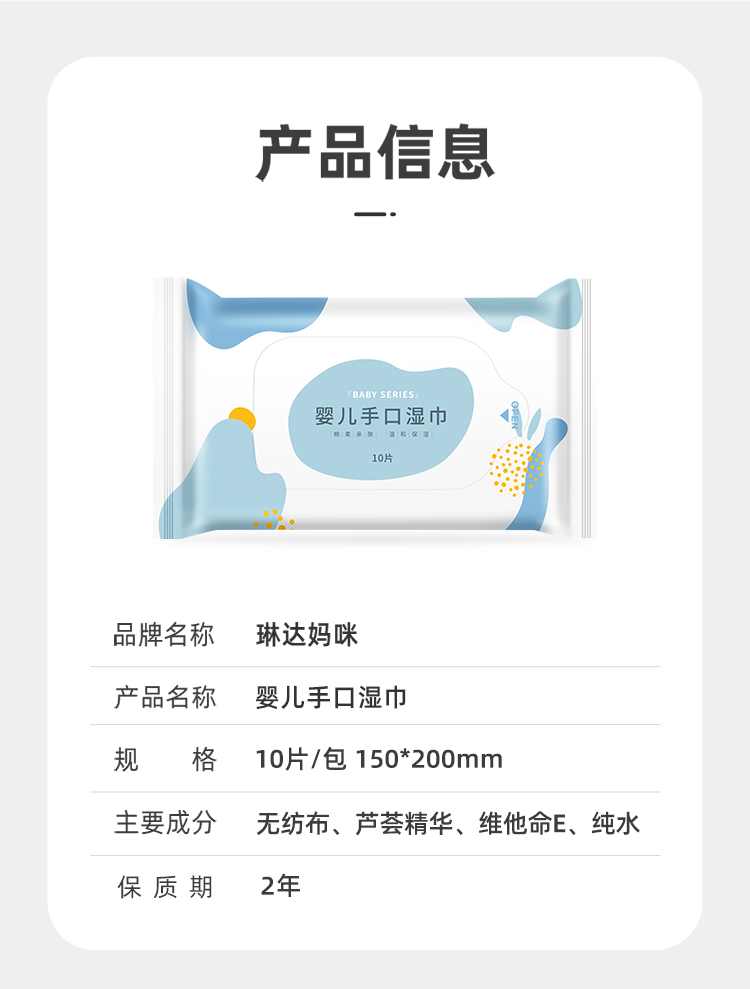商品名称:【大尺寸】琳达妈咪婴儿湿纸巾新生手口使用屁宝宝幼儿湿巾纸10抽