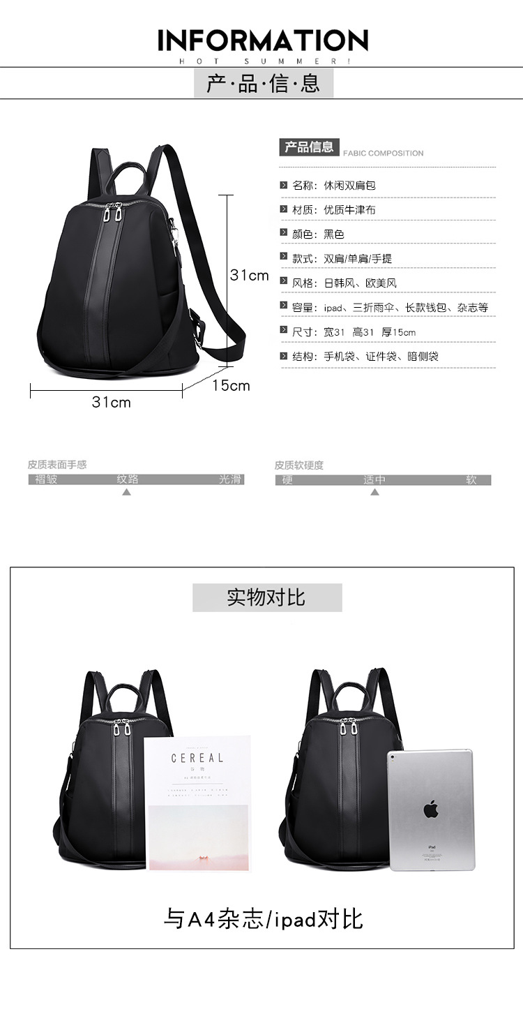 商品名称:彤彤兔 牛津布双肩包潮流韩版休闲时尚百搭双肩包轻便旅行双肩包