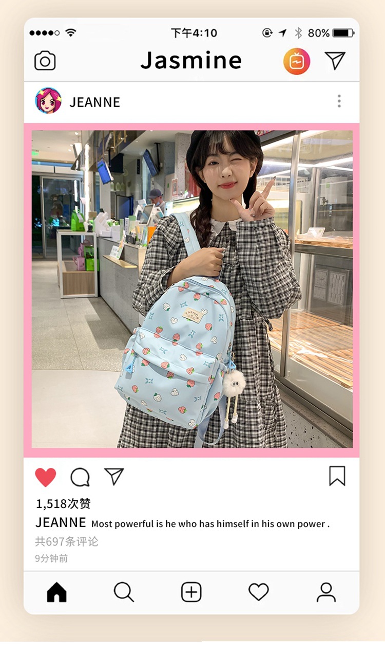 商品名称:彤彤兔 书包女韩版简约小背包ins风森系背包学生书包旅行双肩包