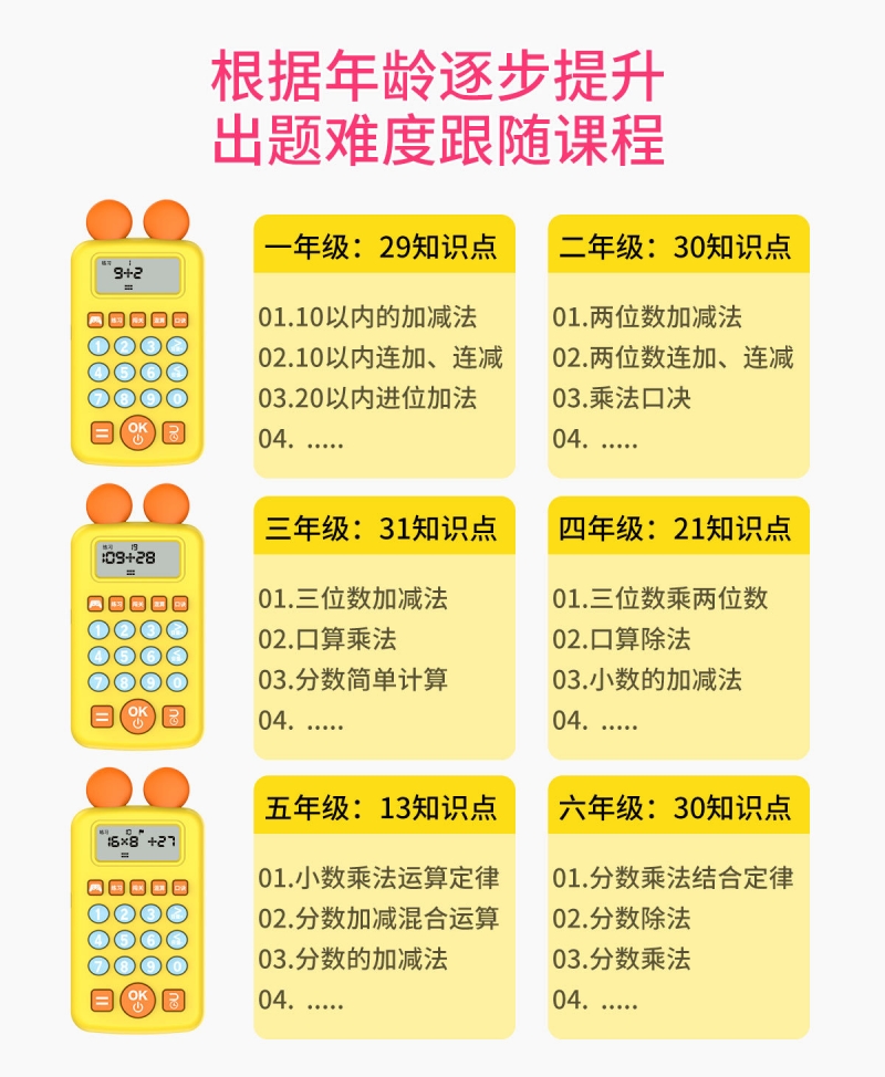 商品名称:新款二代智能儿童口算机小学生早教机宝宝数学训练器口算宝练习机