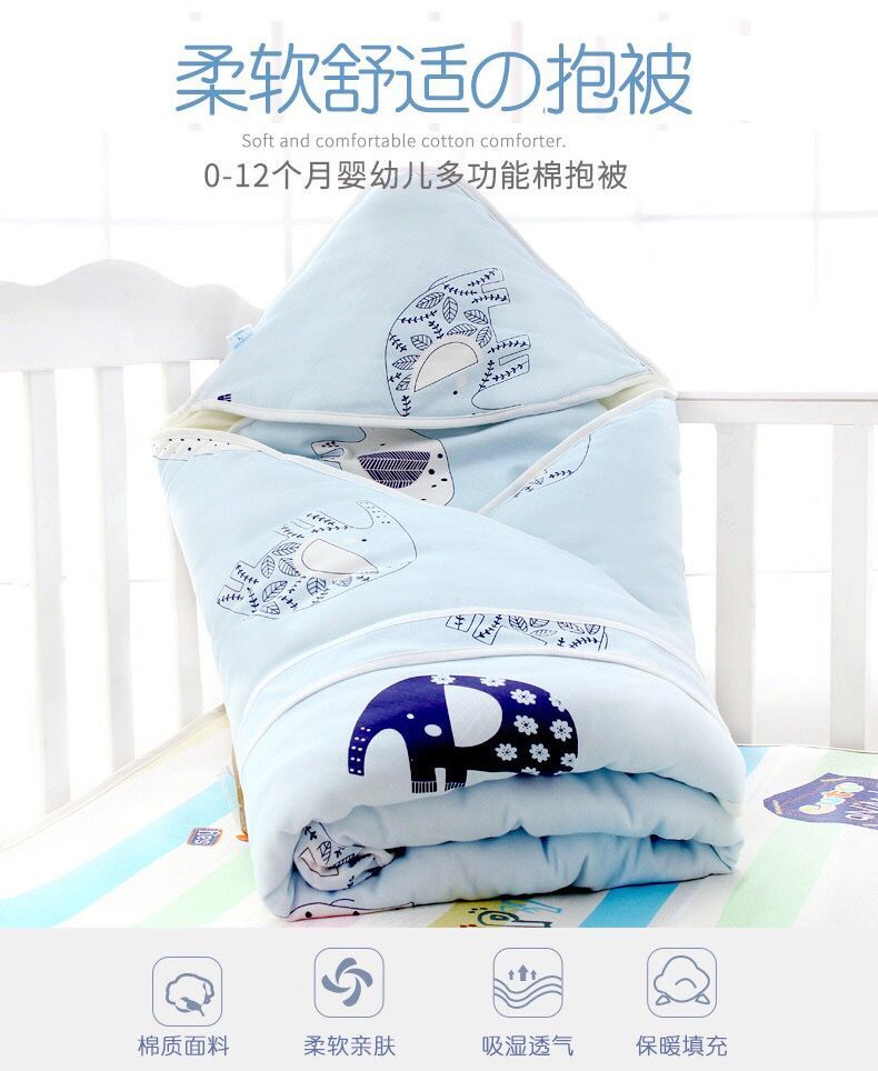 商品名称:婴儿汗布抱被夹棉宝宝柔软包被纯棉新生儿外出抱被四季通用90*90cm包邮被子抱毯加厚