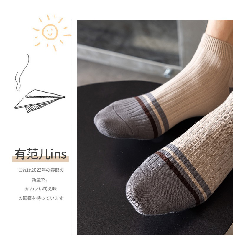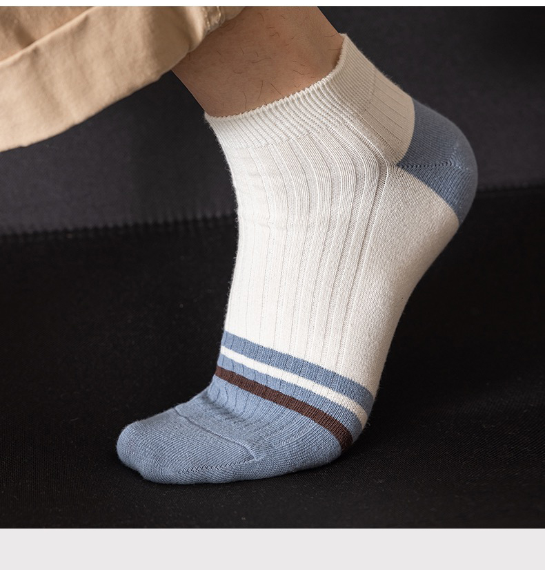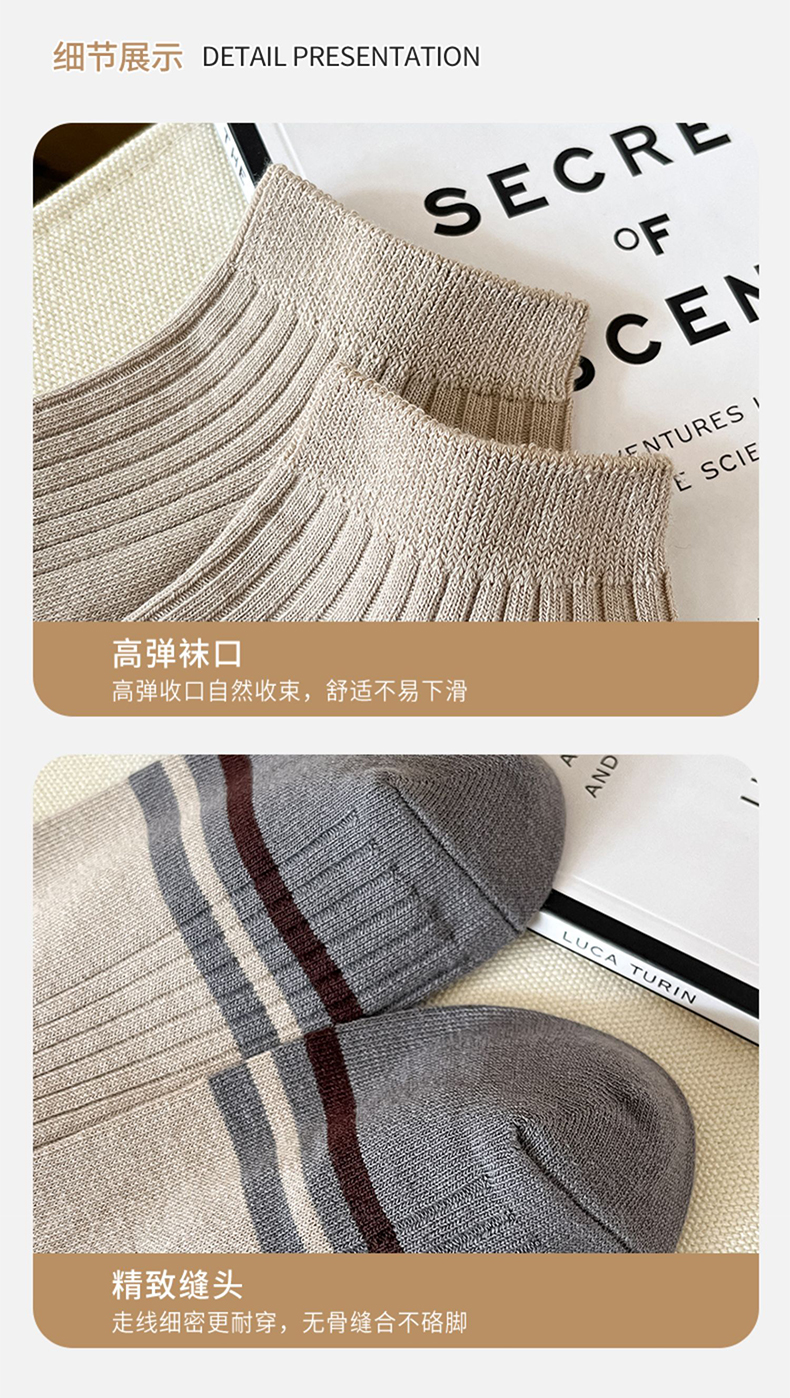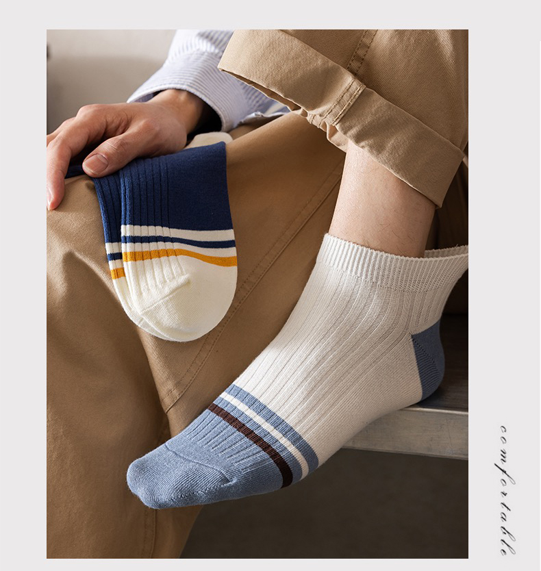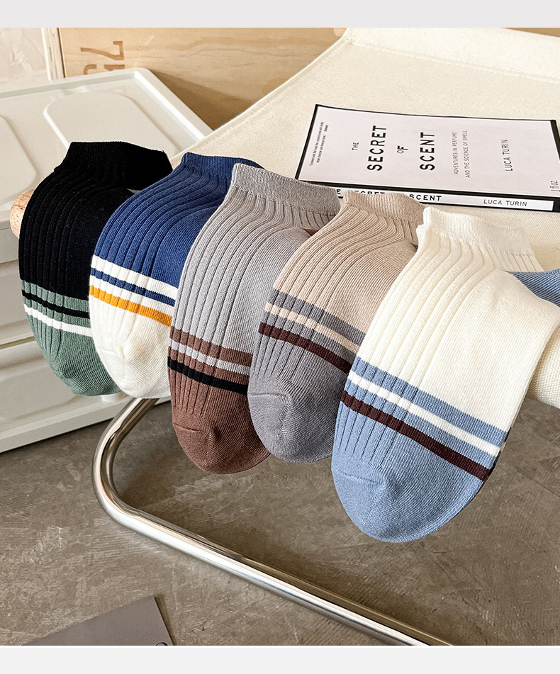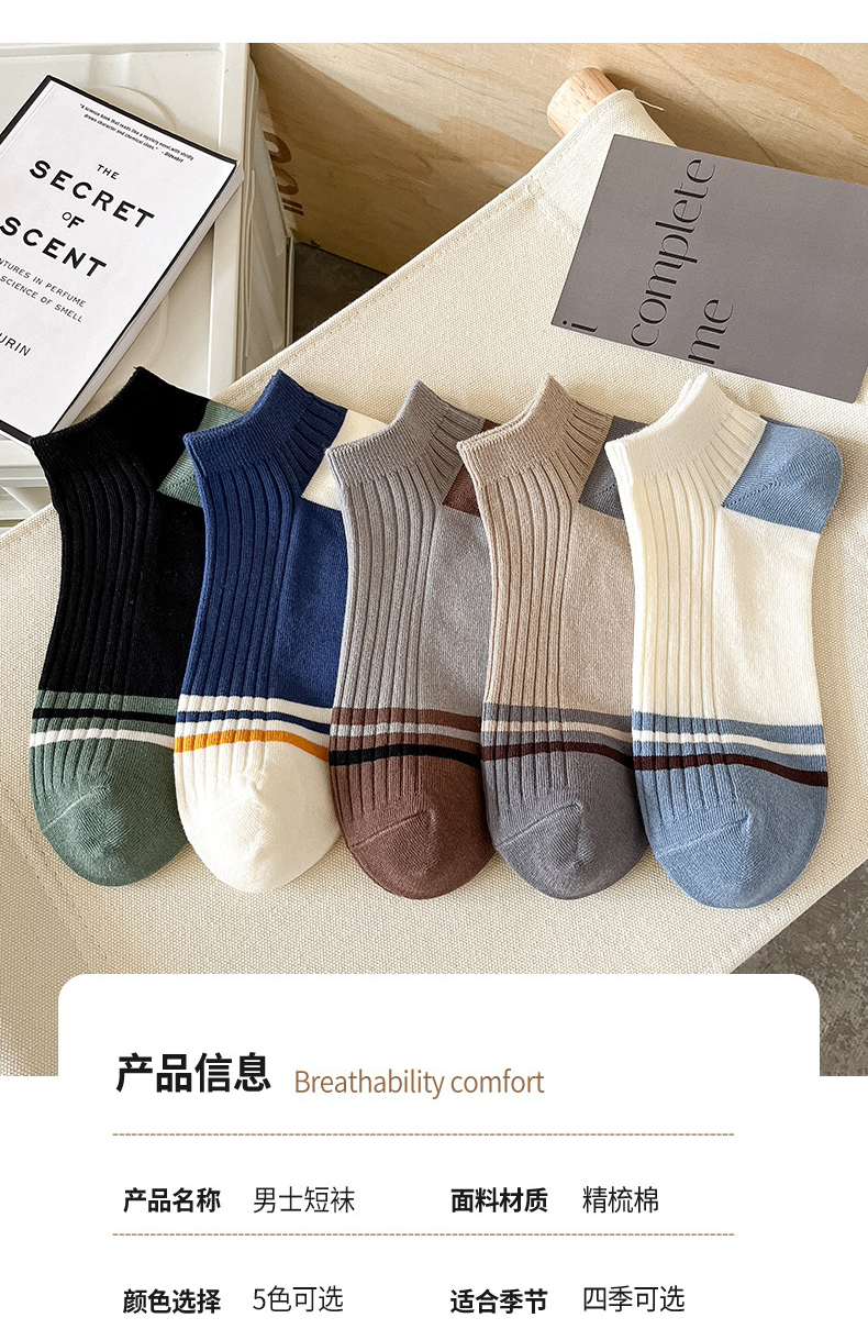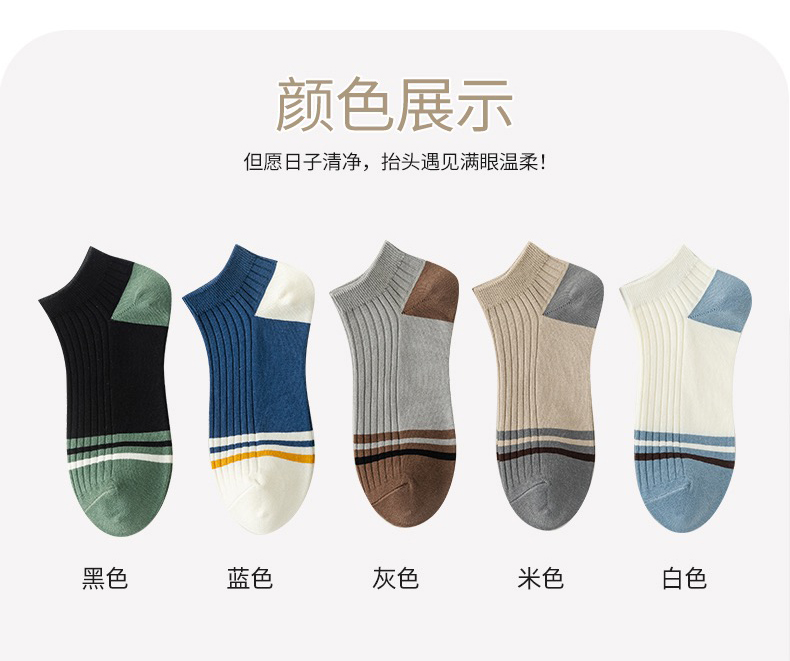 商品名称:【5双装】朝暮栖止棉袜子男士春夏季新款时尚简约透气横条拼色船袜短筒棉袜子