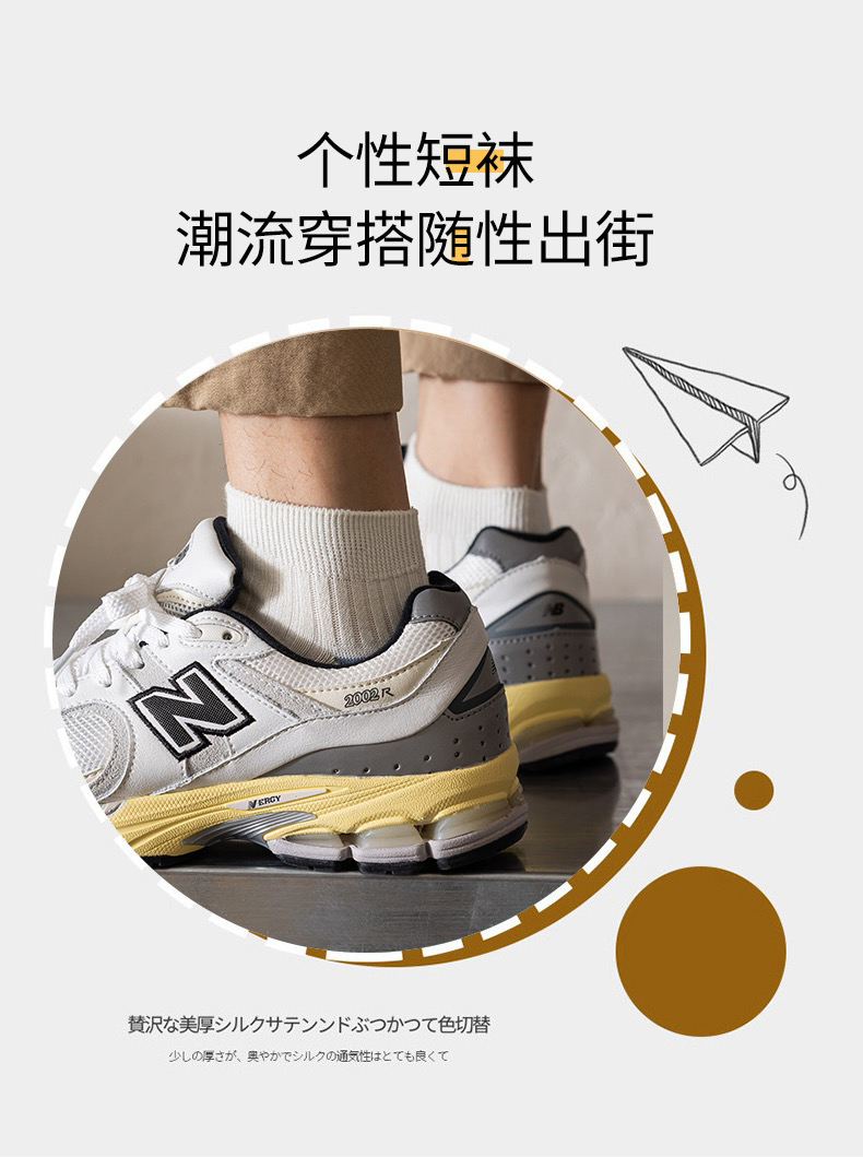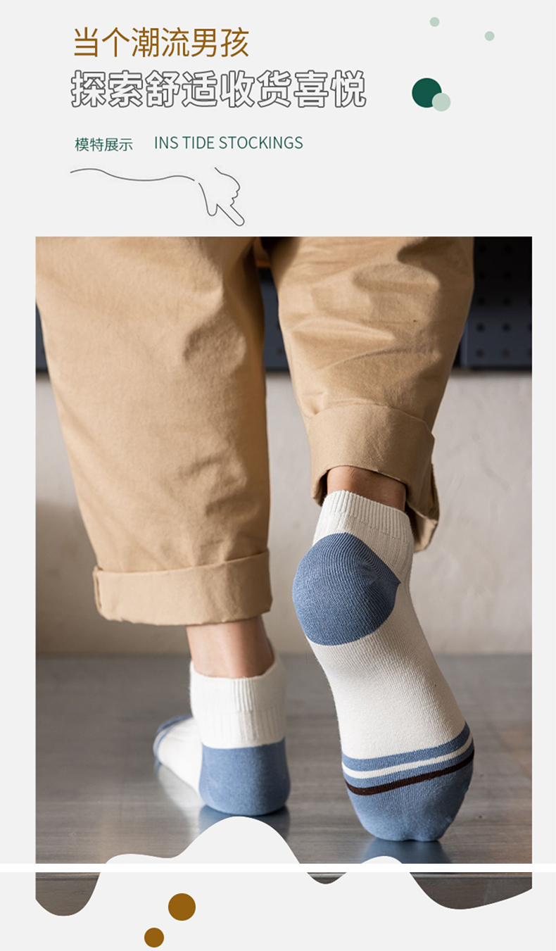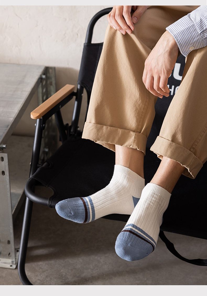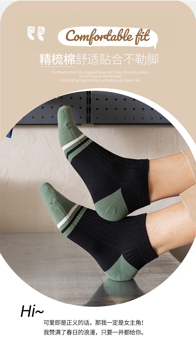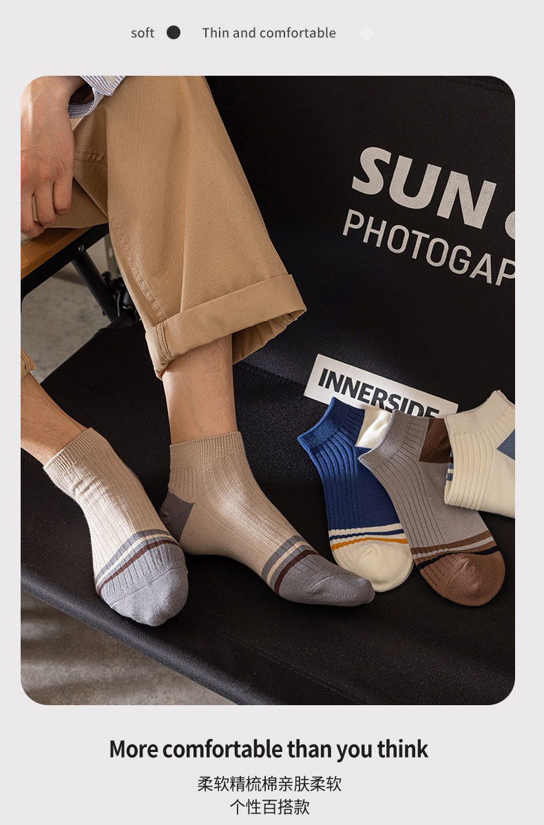 商品名称:【5双装】朝暮栖止棉袜子男士春夏季新款时尚简约透气横条拼色船袜短筒棉袜子