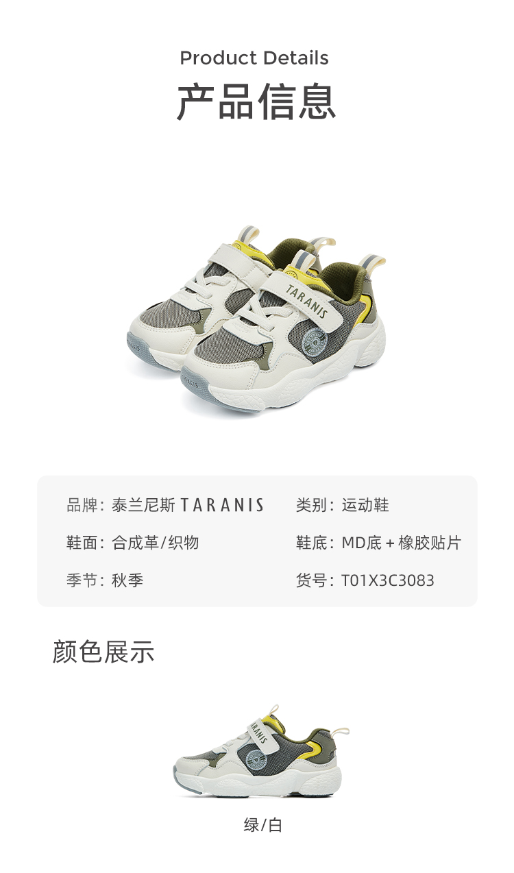 商品名称:【品牌直供】泰兰尼斯2025春秋款2-6岁儿童男童中小童幼儿园童鞋爆米花避震透气运动鞋
