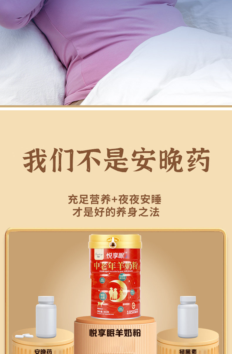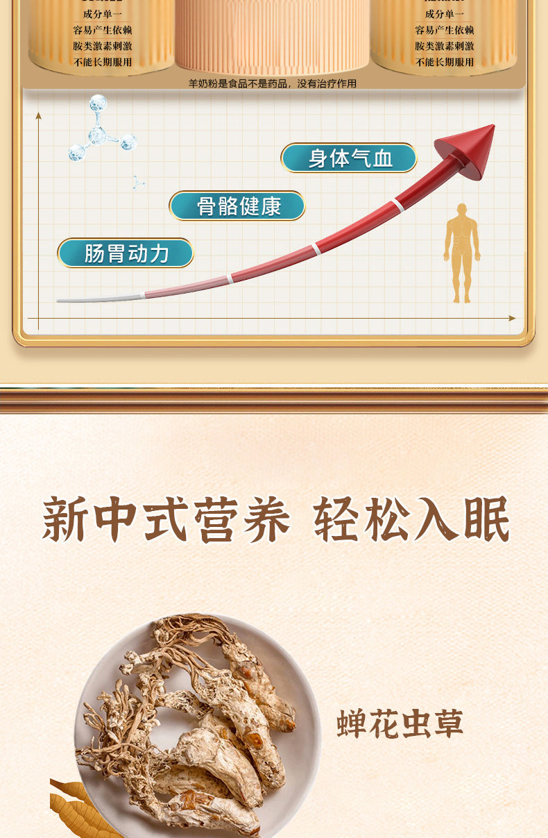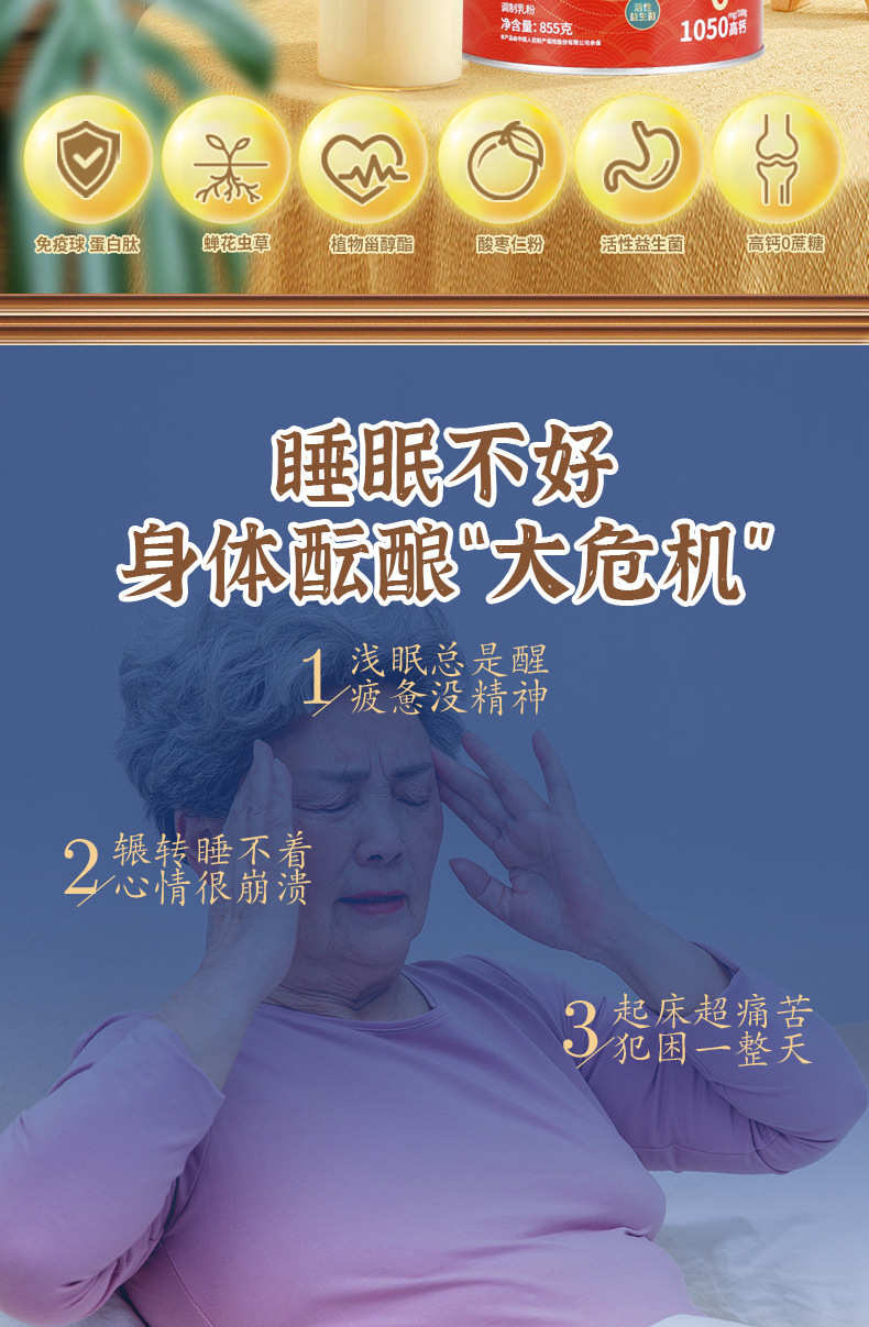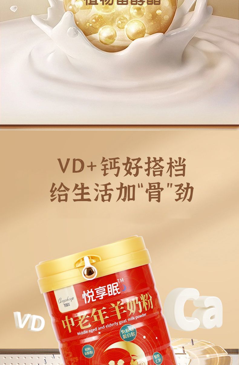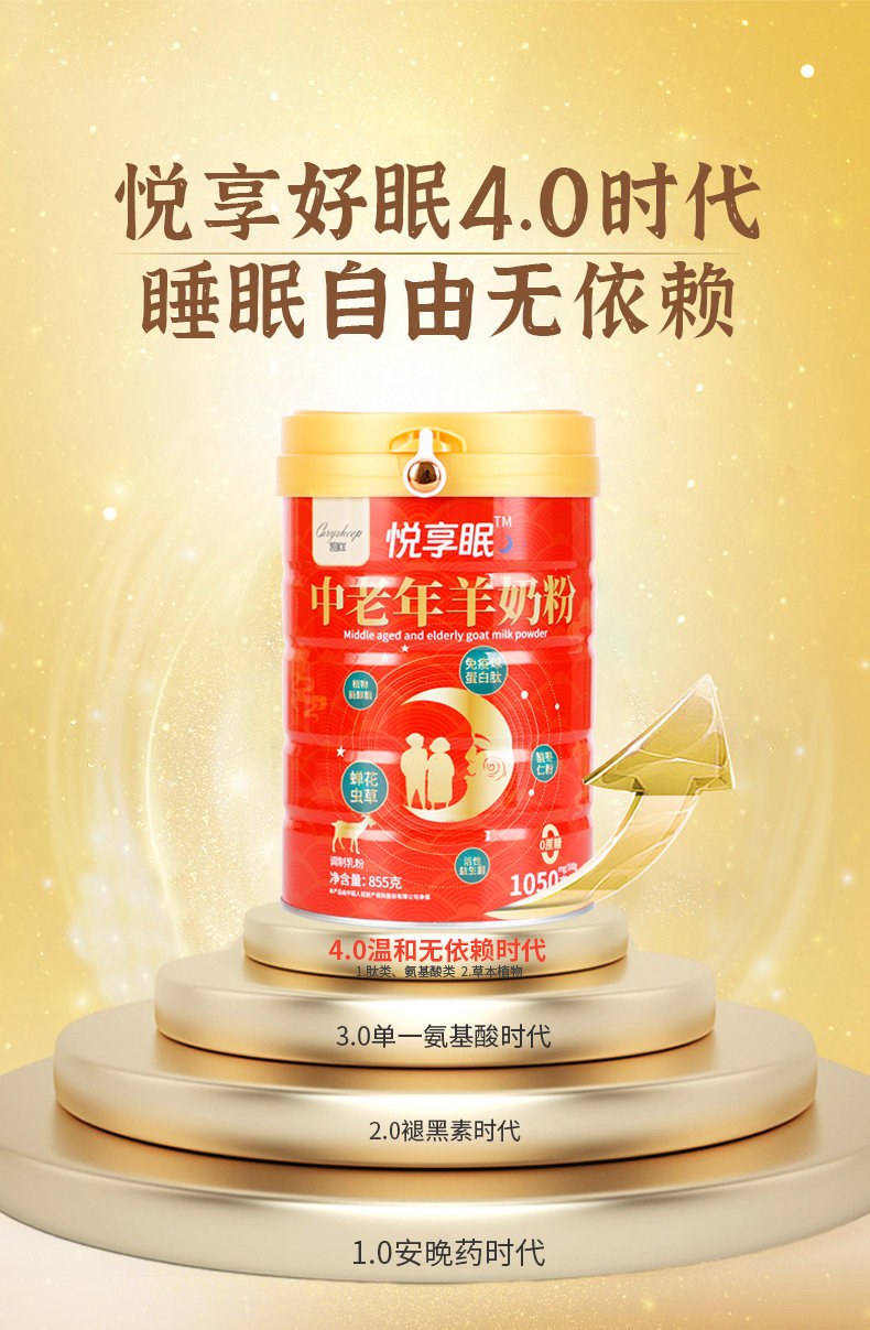 商品名称:凯瑞羊悦享眠gao/钙无蔗糖富硒酸枣仁粉855g/罐蝉花虫草中老年睡眠营养羊奶粉