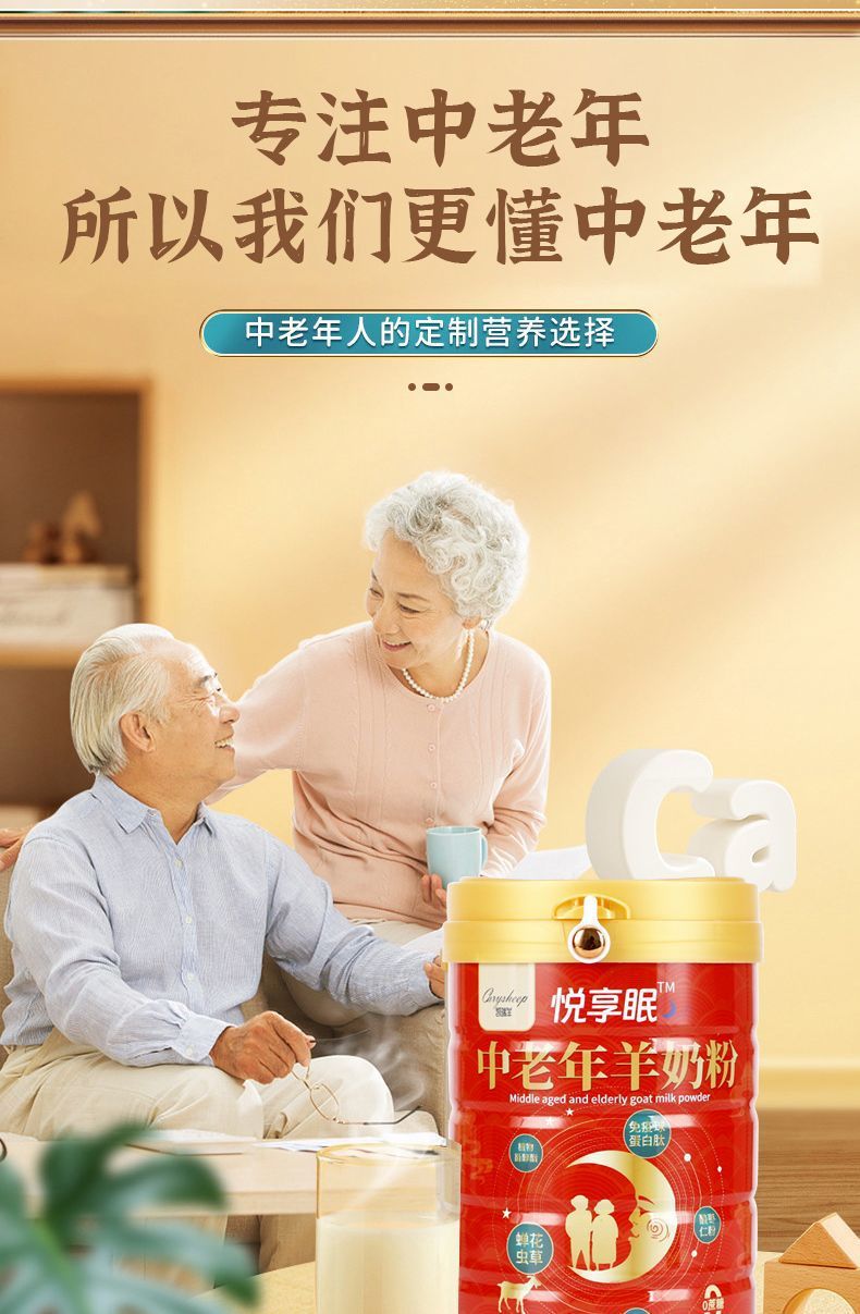 凯瑞羊悦享眠gao/钙无蔗糖富硒酸枣仁粉855g/罐蝉花虫草中老年睡眠营养羊奶粉