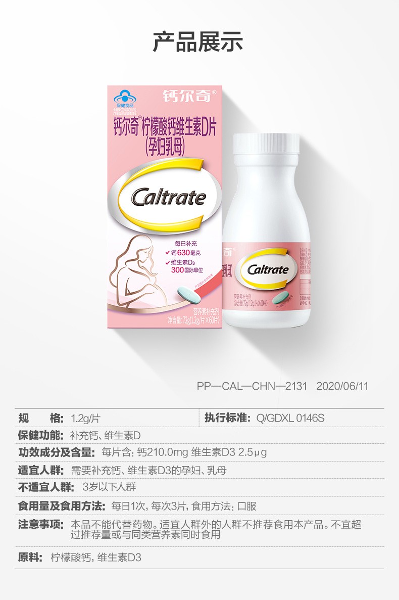 商品名称:新日期钙尔奇 柠檬酸钙维生素D片 60片适合孕妇哺乳期女性钙片