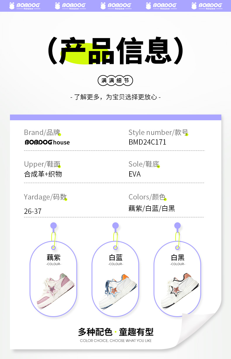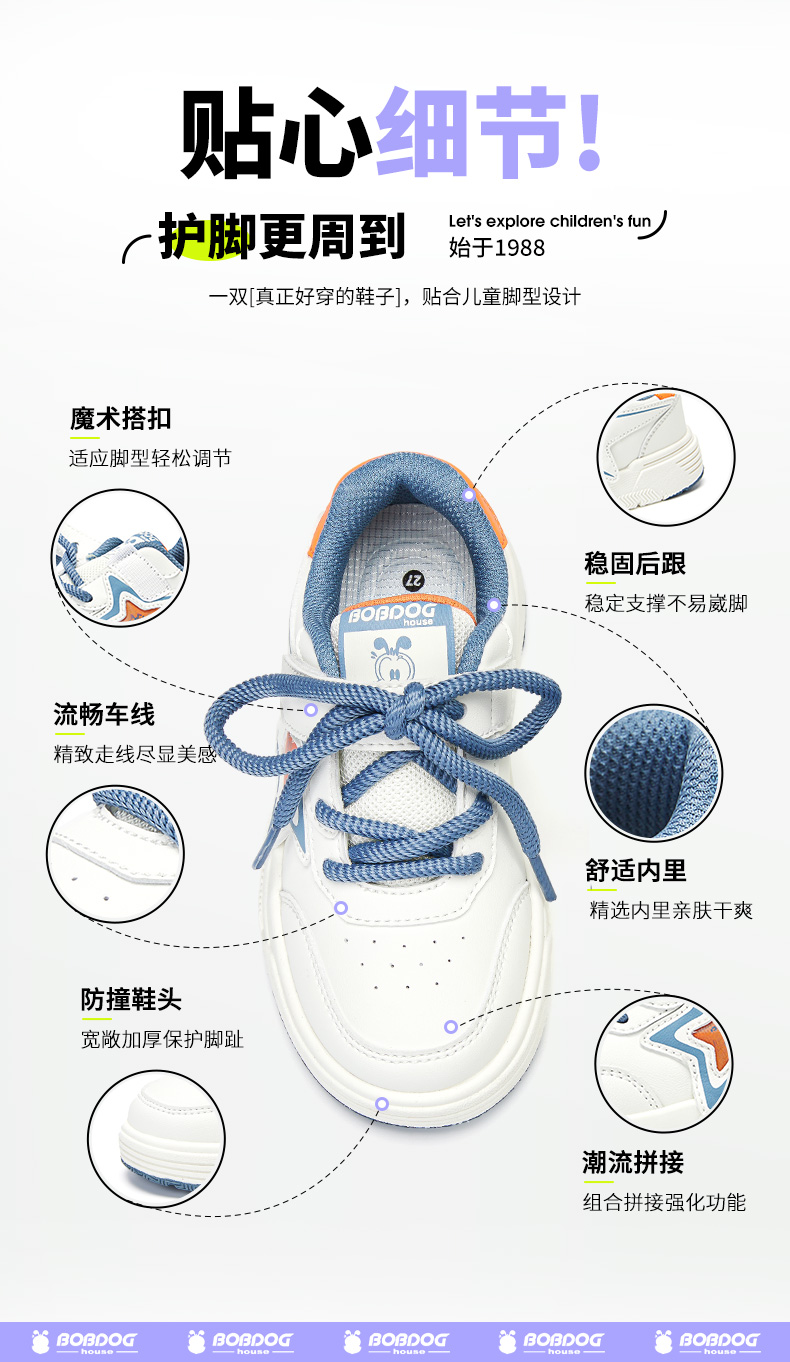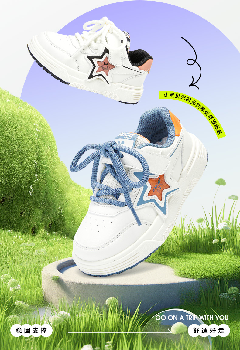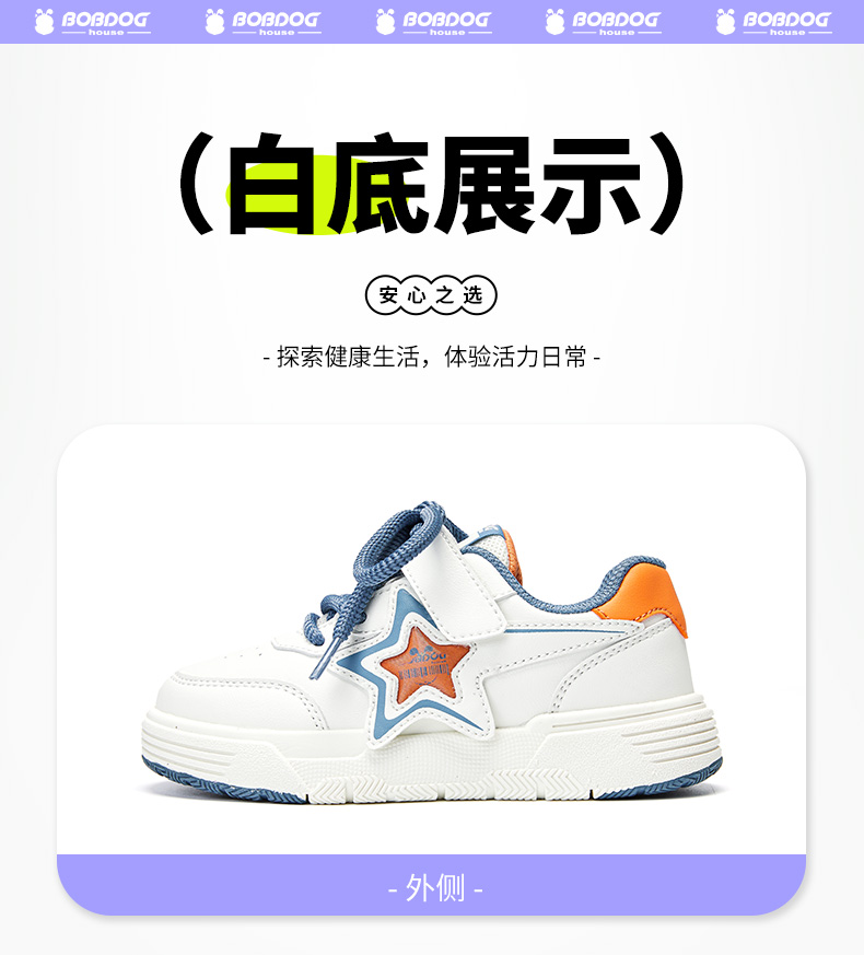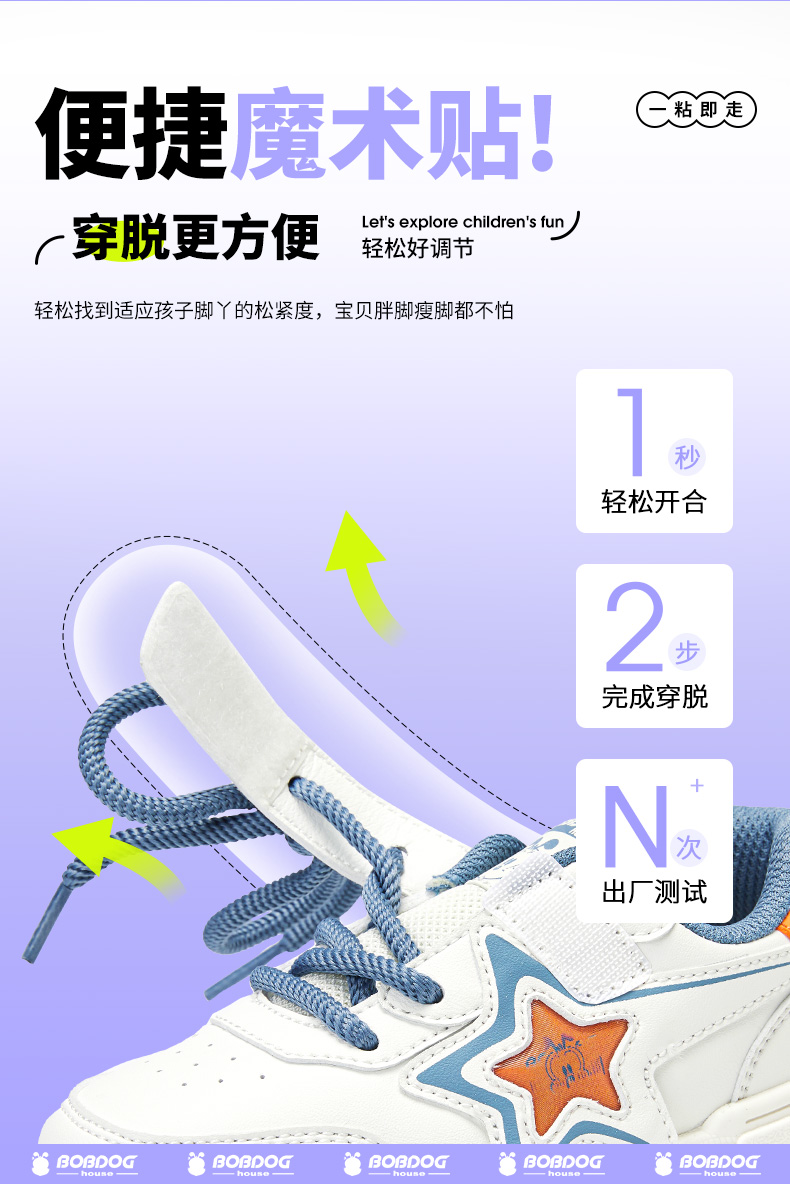 商品名称:巴布豆house童鞋春秋新款中大童魔术贴休闲舒适防滑耐磨男女童板鞋