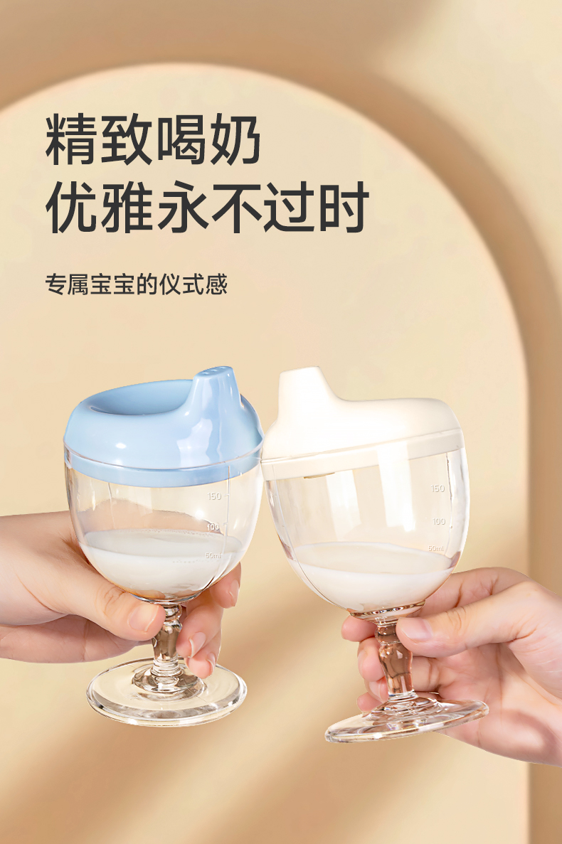 如山儿童高脚杯学饮杯鸭嘴宝宝喝水家用牛奶杯直饮果汁酒杯式奶瓶