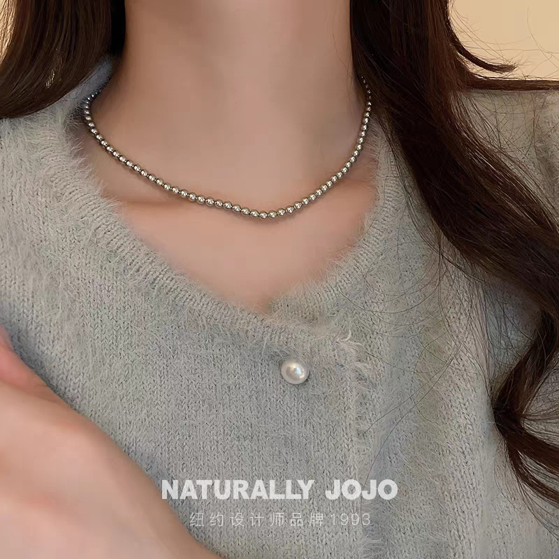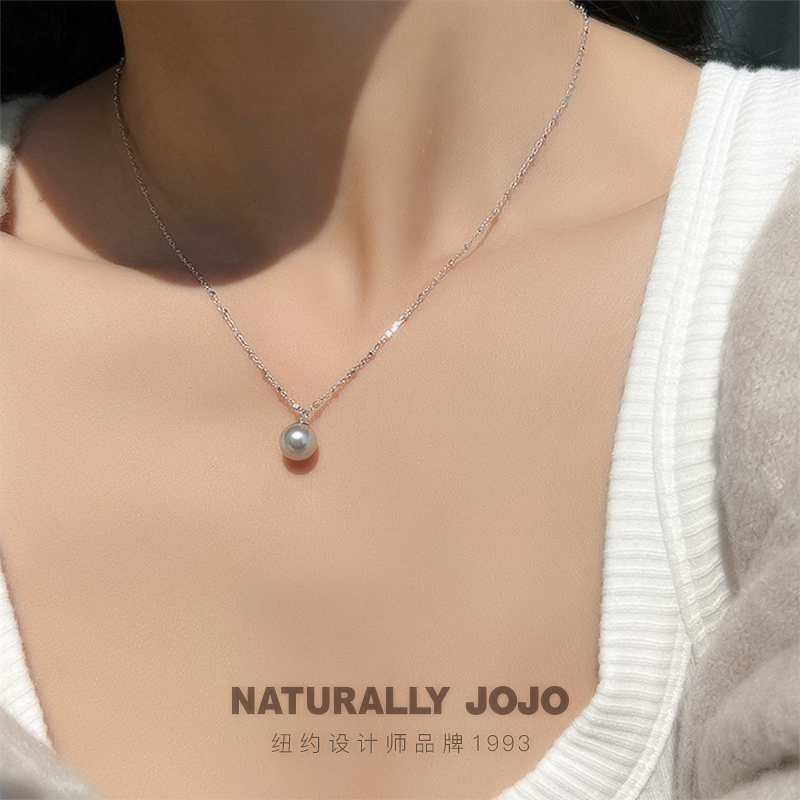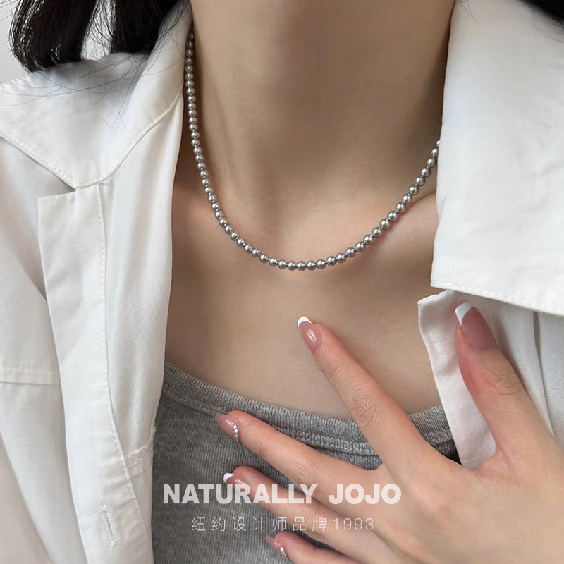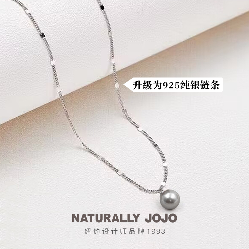 NATURALLY JOJO女士新款S925纯银双层叠戴仿珍珠项链锁骨链饰品女生生日礼物