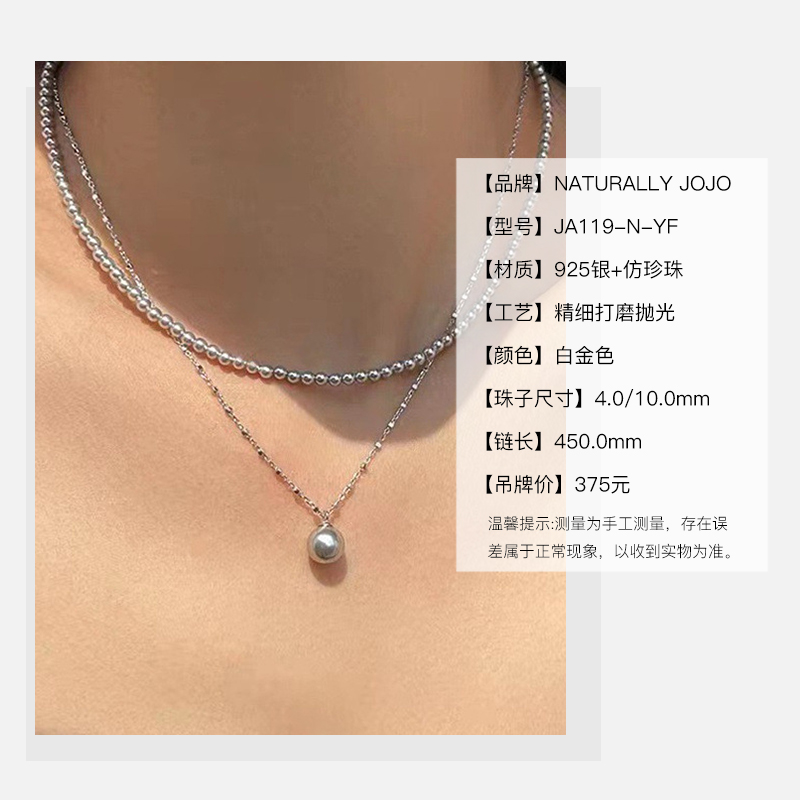 商品名称:NATURALLY JOJO女士新款S925纯银双层叠戴仿珍珠项链锁骨链饰品女生生日礼物