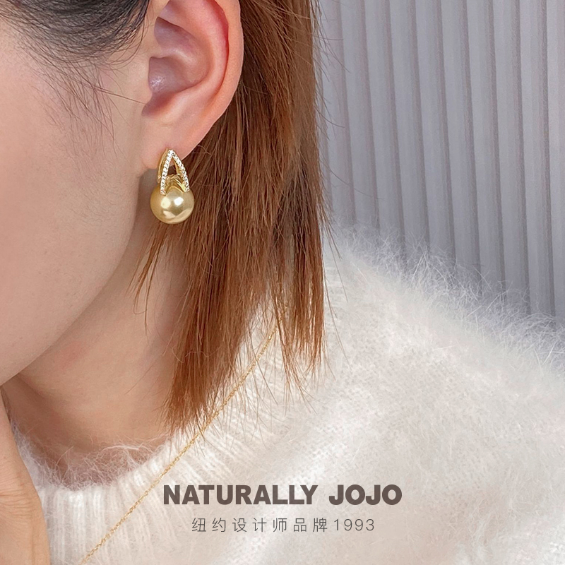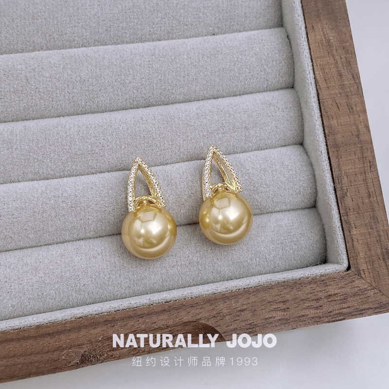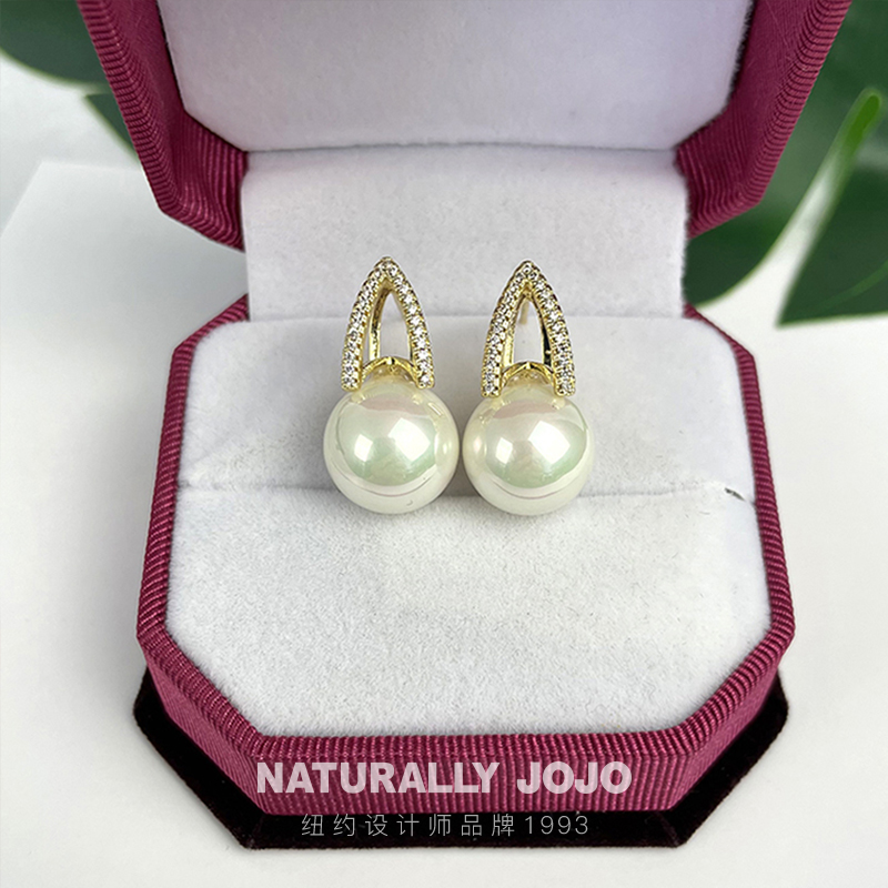 NATURALLY JOJO女士复古个性仿珍珠澳白珠耳环气质耳钉潮小众设计百搭耳饰饰品