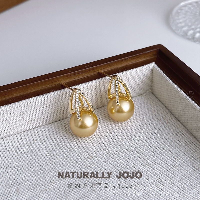 复古个性仿珍珠南洋金珠耳环