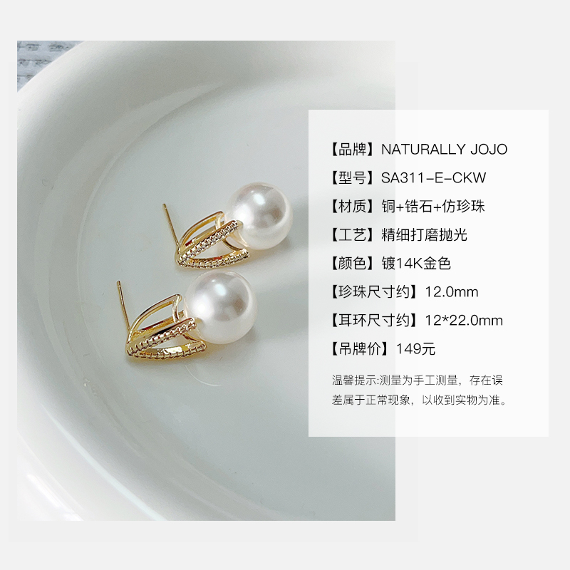 商品名称:NATURALLY JOJO女士复古个性仿珍珠澳白珠耳环气质耳钉潮小众设计百搭耳饰饰品