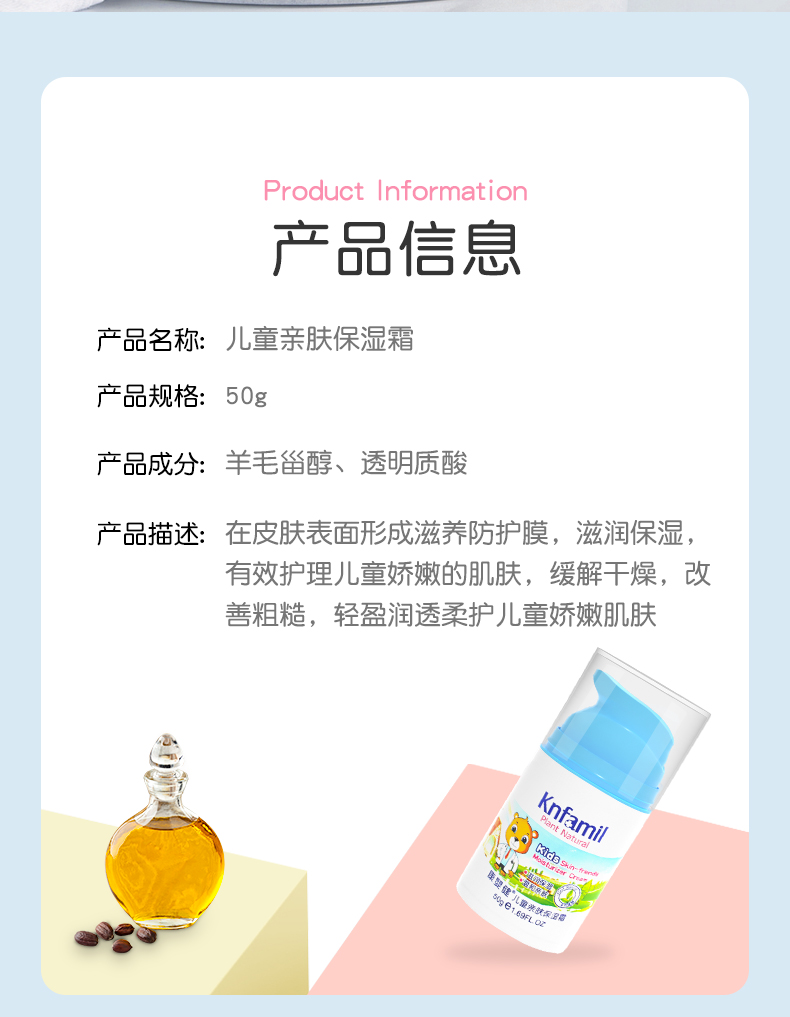 商品名称:康婴健儿童亲肤保湿霜儿童面霜宝宝润肤霜秋冬滋润干皮肤擦脸护肤50g润肤乳保湿霜