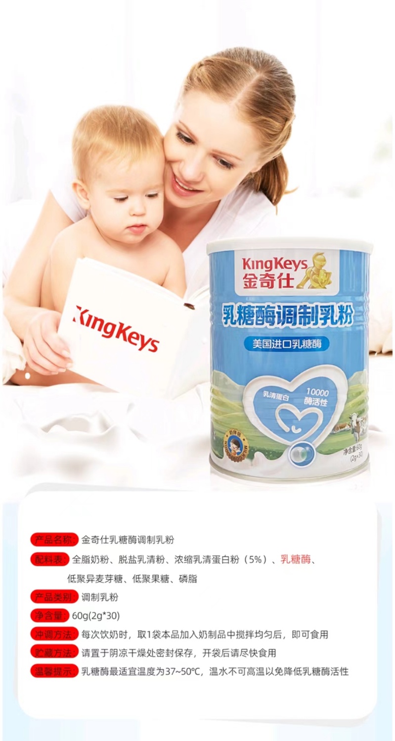 金奇仕乳糖酶调制乳粉30包酸性乳糖酶10000型宝宝奶伴侣乳糖不耐受