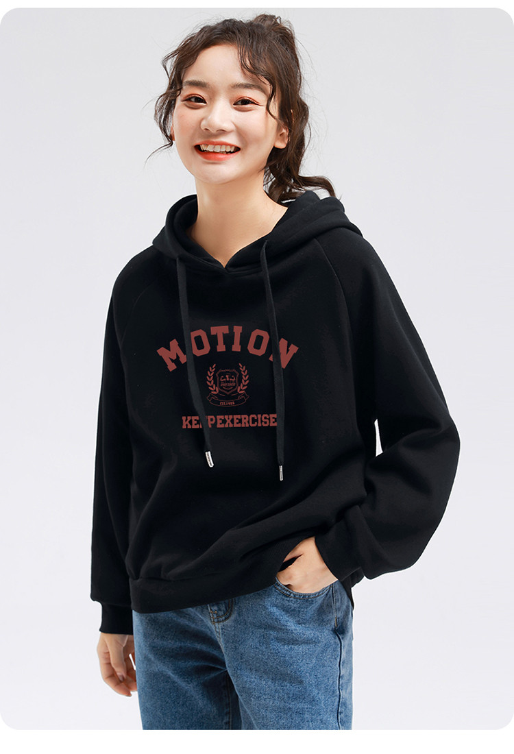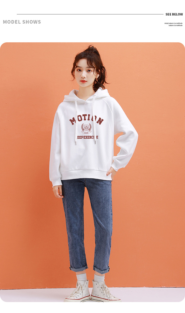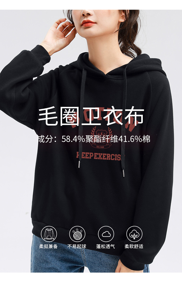 商品名称:米子旗秋装连帽卫衣女字母印花基础款休闲透气百搭 661338