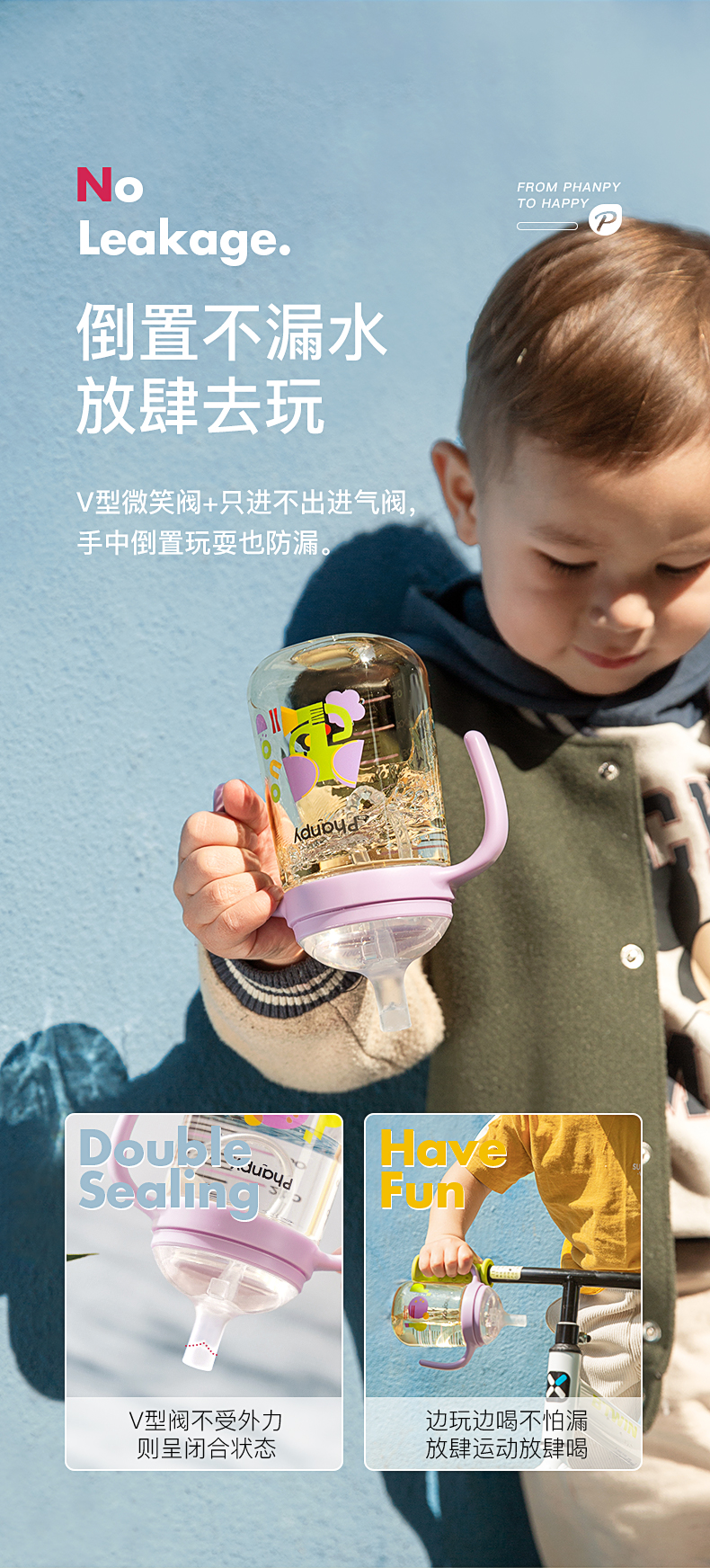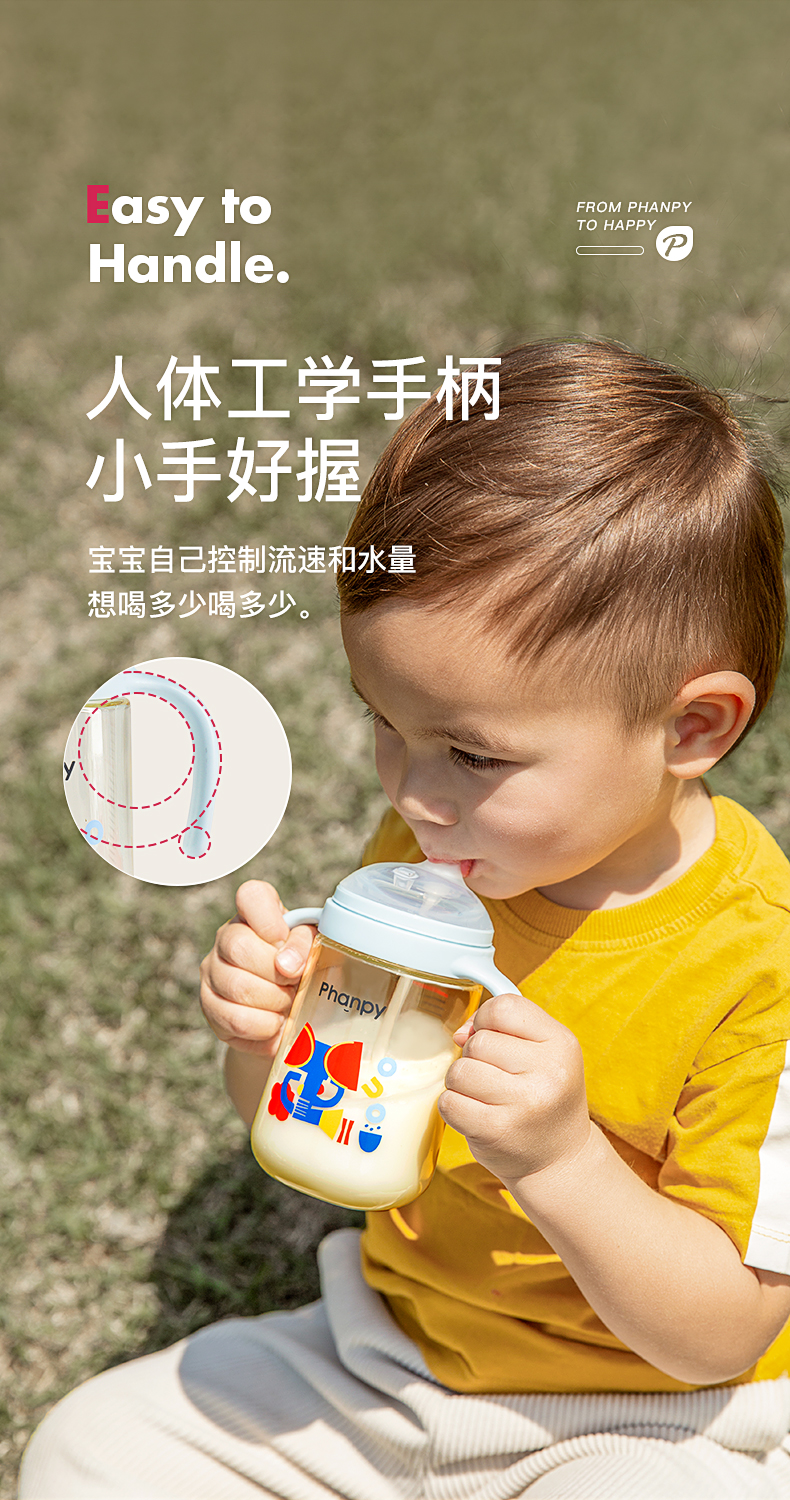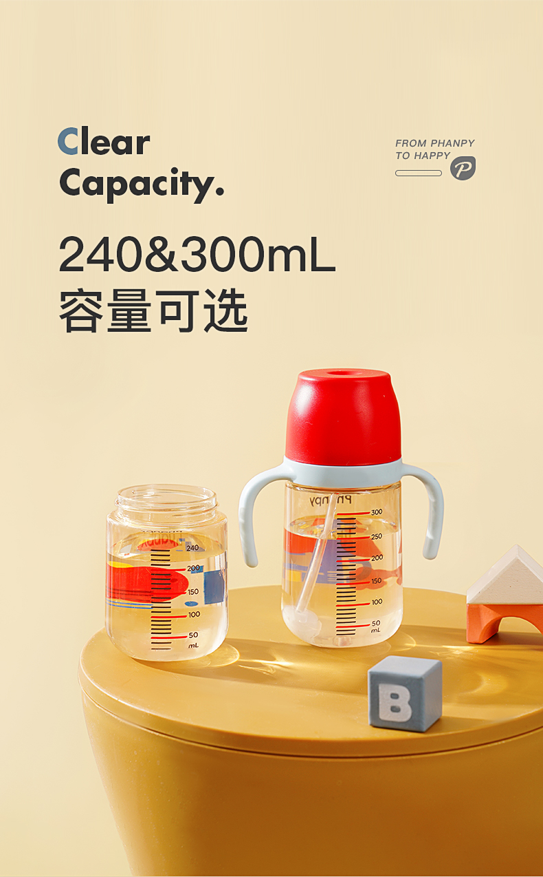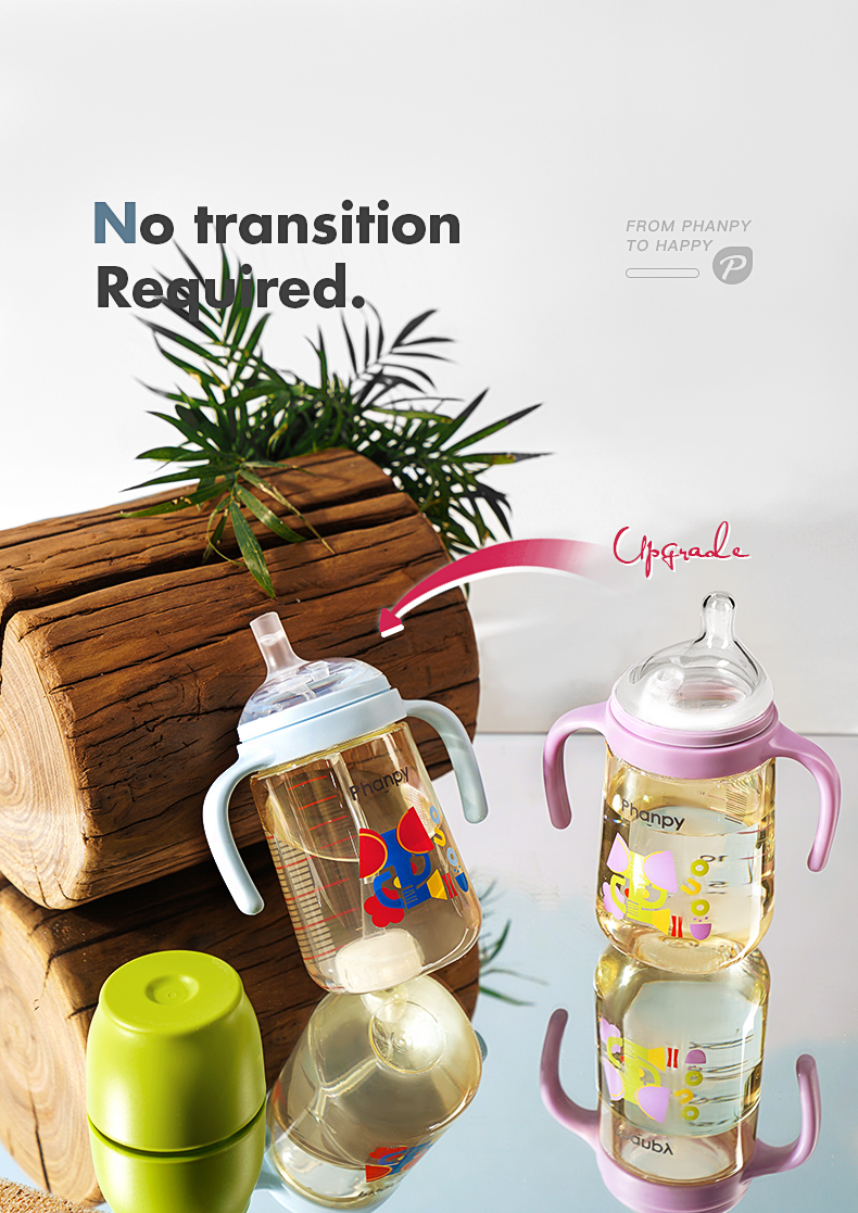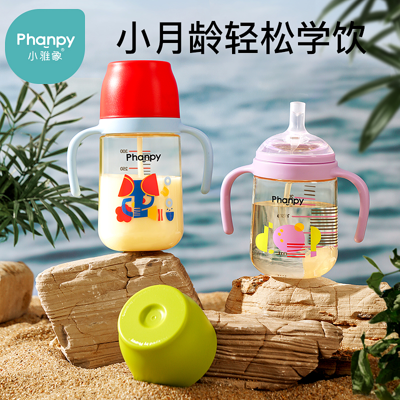 小雅象PHANPY吸管奶瓶6个月1岁2岁以上大宝宝儿童吸管杯喝奶防胀气ppsu学饮杯