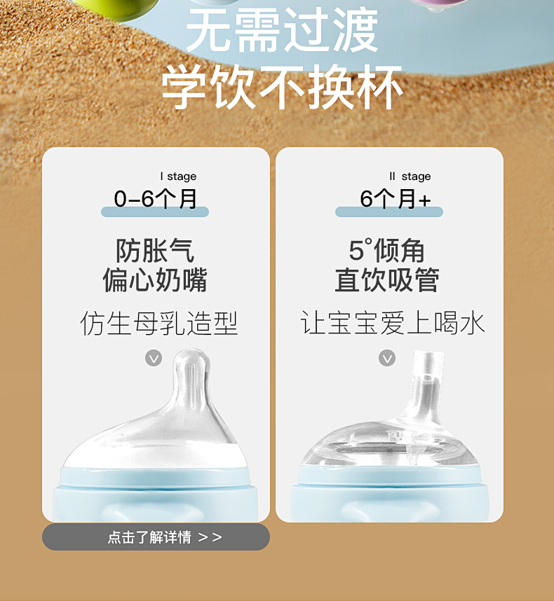 商品名称:小雅象PHANPY吸管奶瓶6个月1岁2岁以上大宝宝儿童吸管杯喝奶防胀气ppsu学饮杯