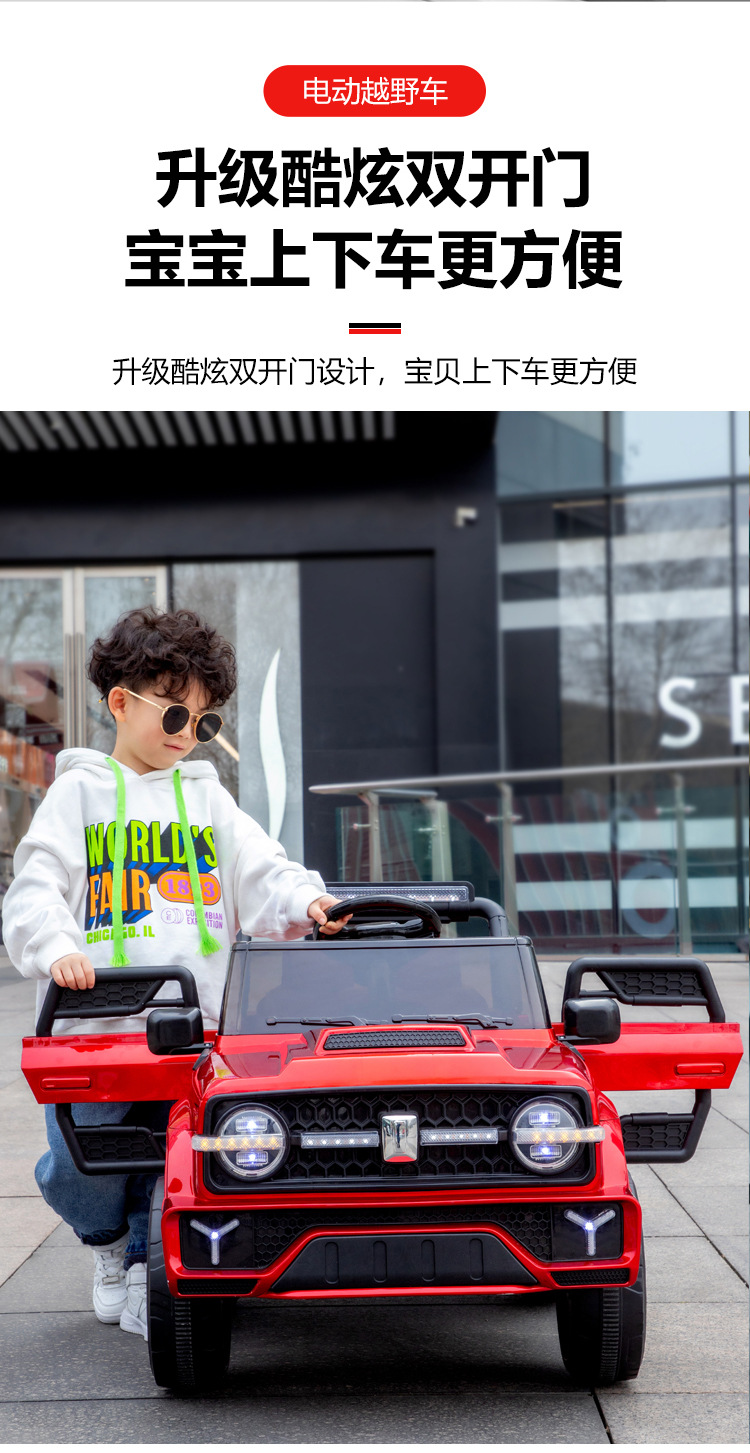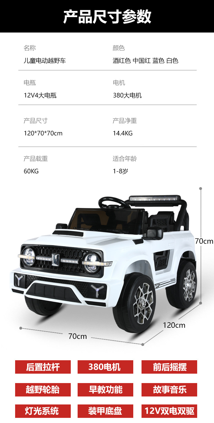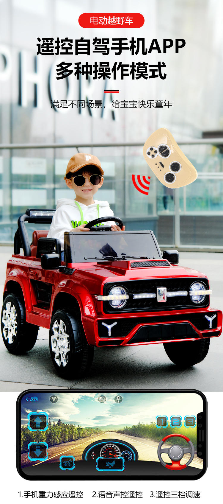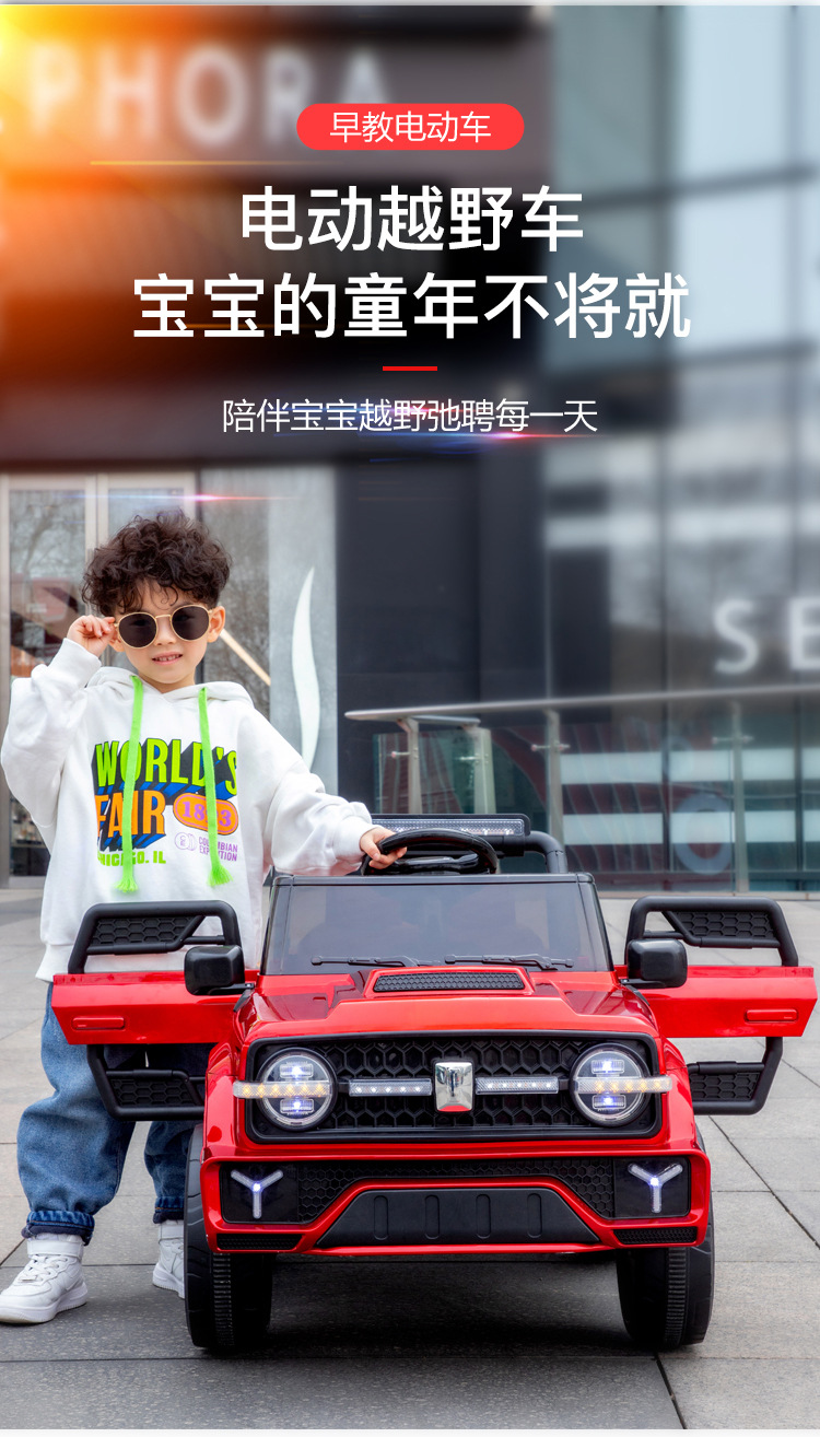 商品名称:派克奇儿童电动汽车可坐人1-6岁遥控汽车电动越野车四轮四驱/双驱车灯光音乐早教