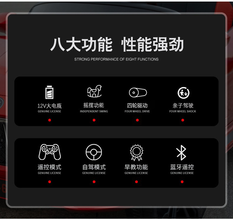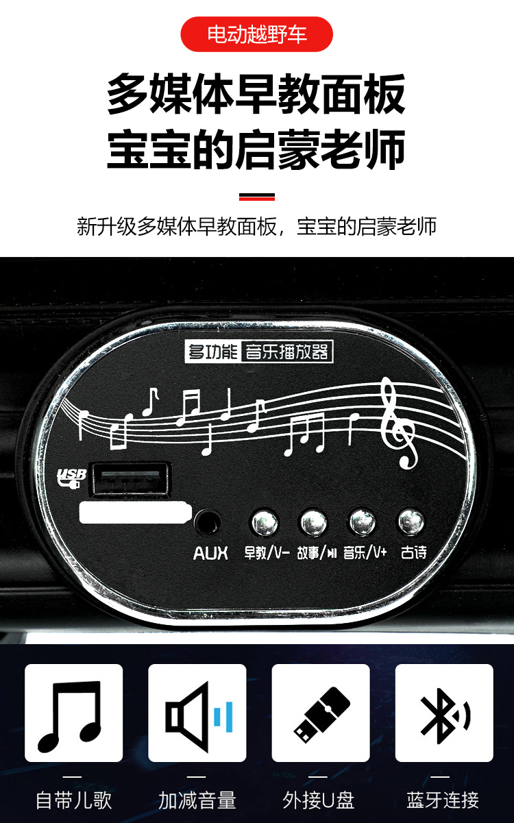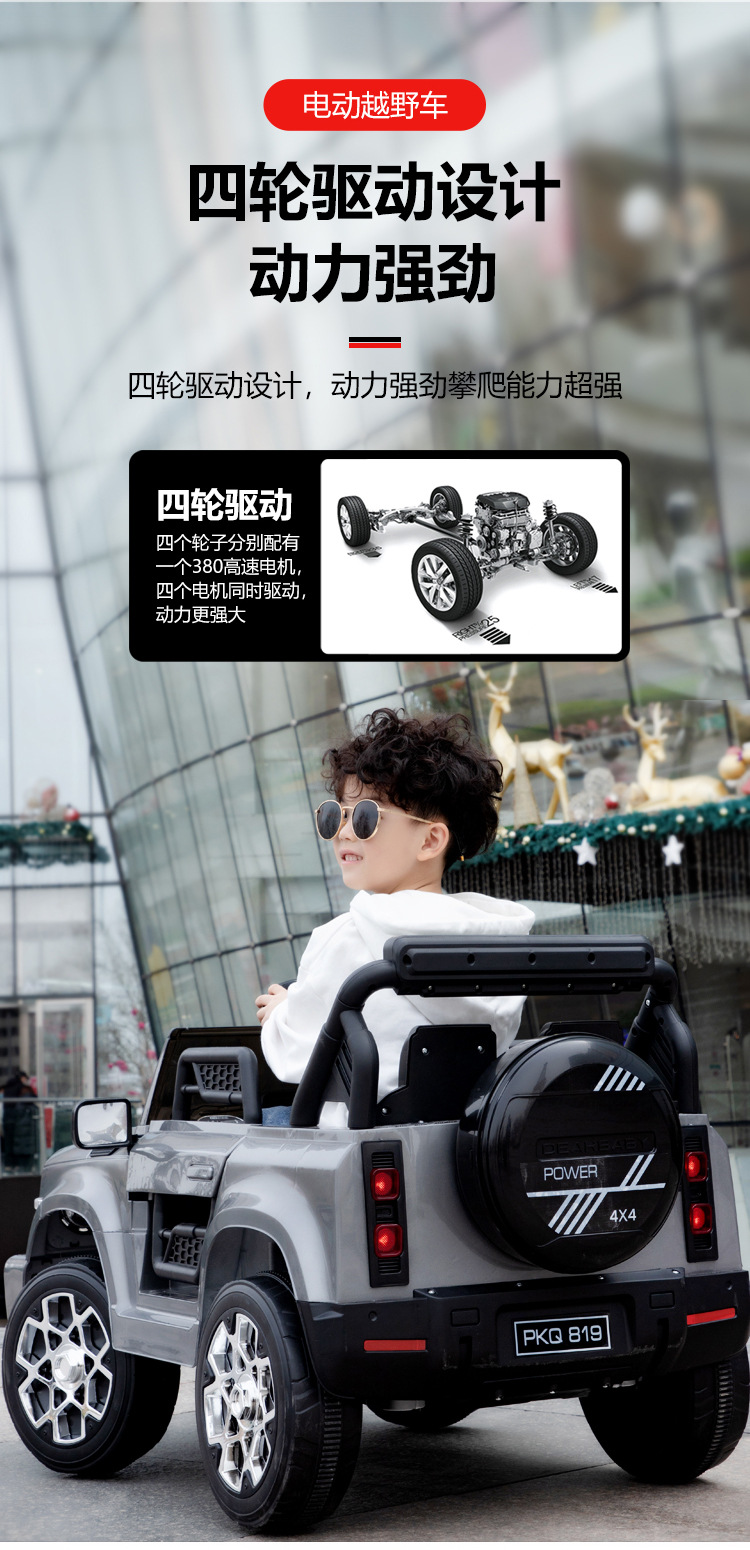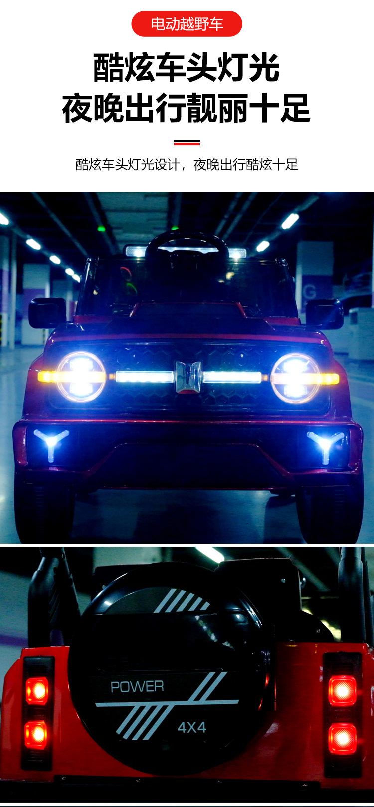 商品名称:派克奇儿童电动汽车可坐人1-6岁遥控汽车电动越野车四轮四驱/双驱车灯光音乐早教