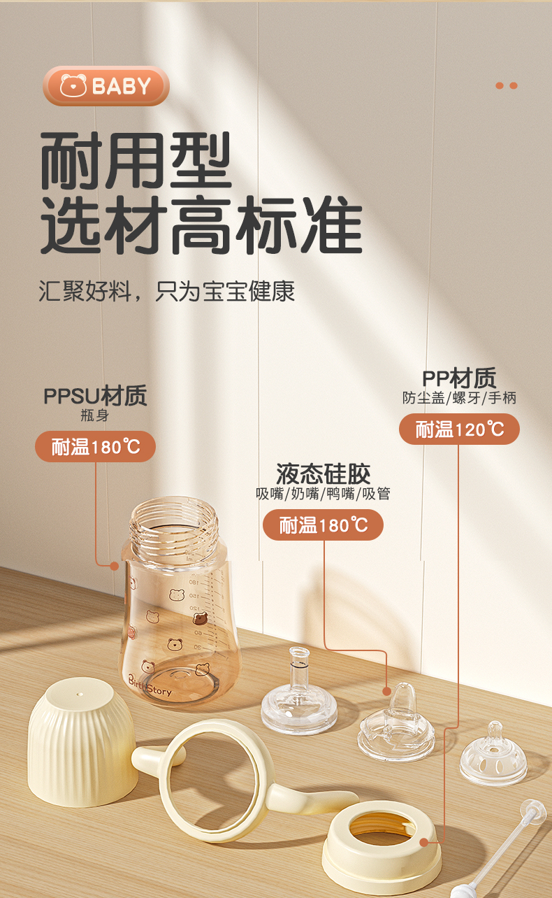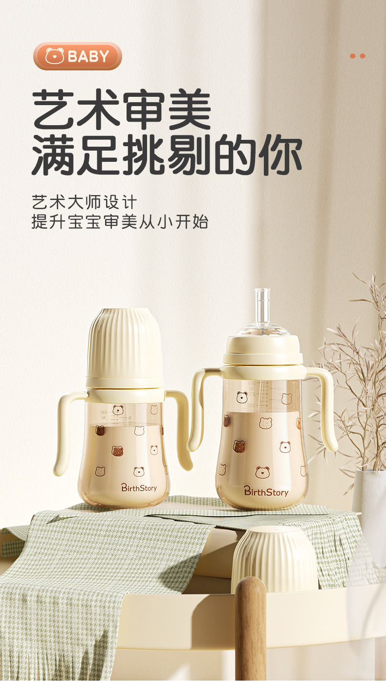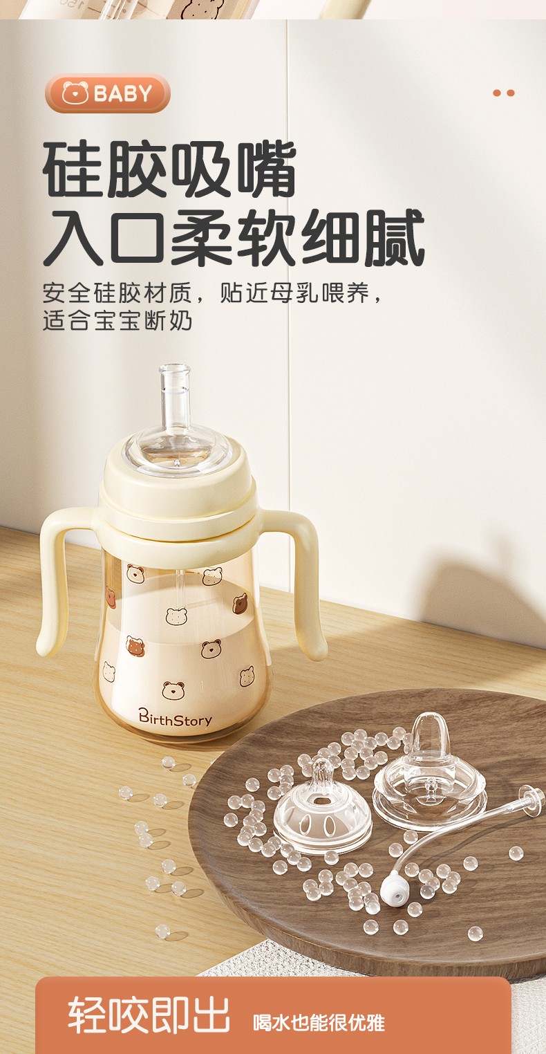 商品名称:【PPSU一瓶三用】良品物语婴儿奶瓶耐摔防胀气学饮杯带手柄新生儿童吸管水杯鸭嘴吸嘴
