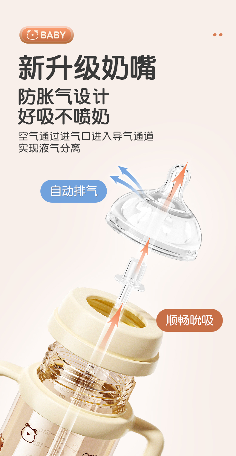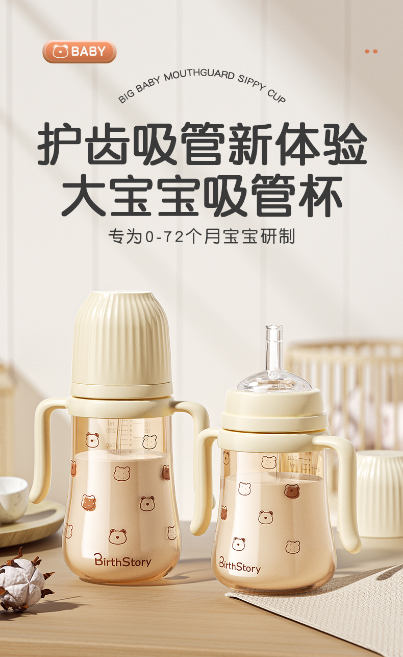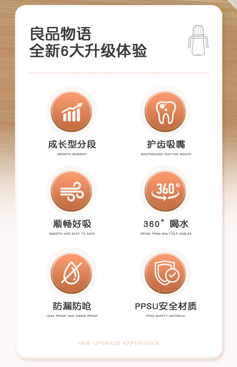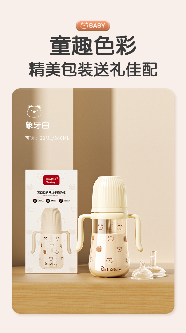 商品名称:【PPSU一瓶三用】良品物语婴儿奶瓶耐摔防胀气学饮杯带手柄新生儿童吸管水杯鸭嘴吸嘴