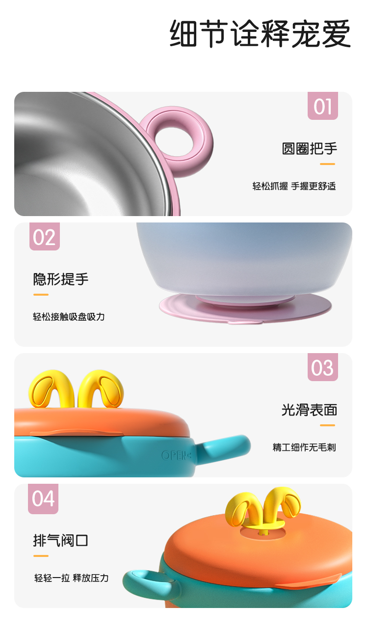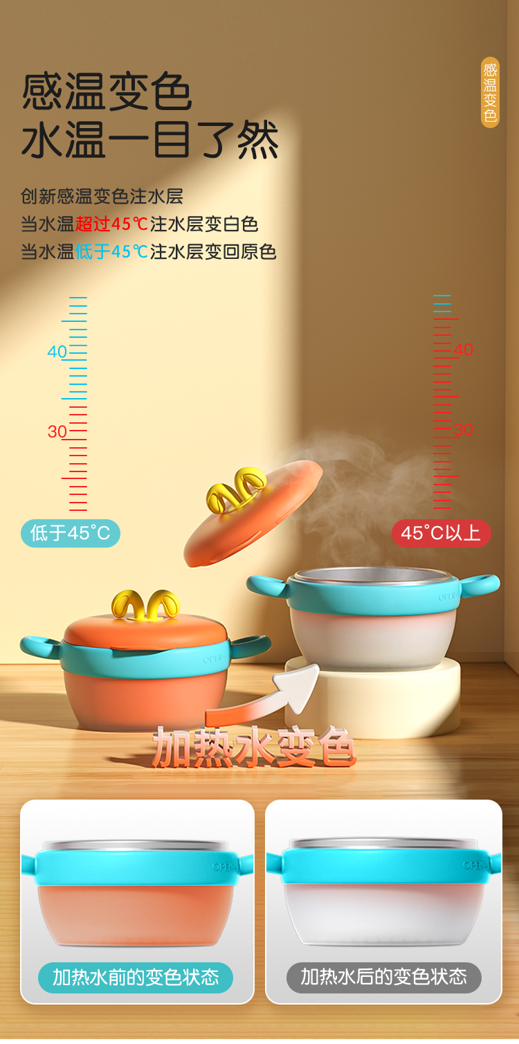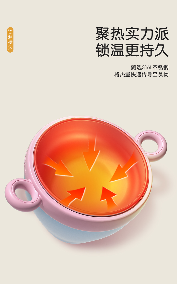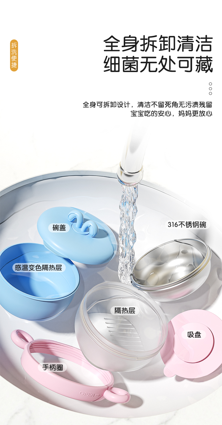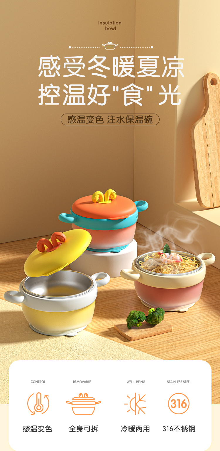 爱菲儿-LAViLL-宝宝感温变色辅食碗婴儿注水保温碗恒温不锈钢儿童防烫吸盘碗婴幼儿餐具