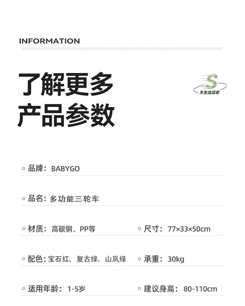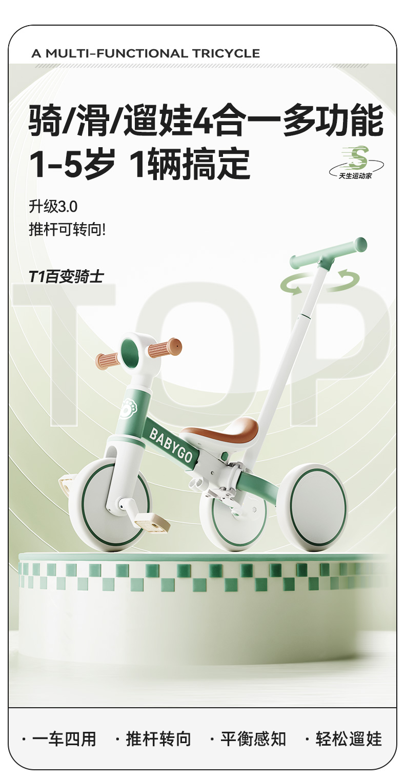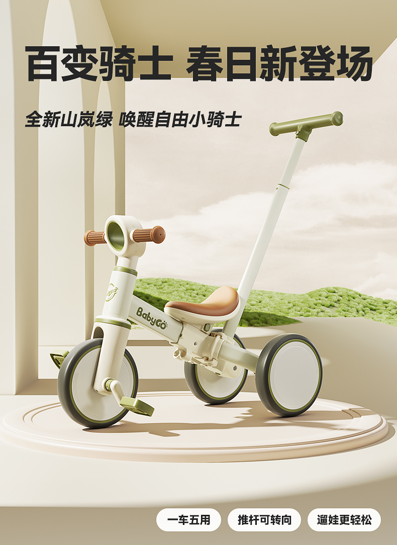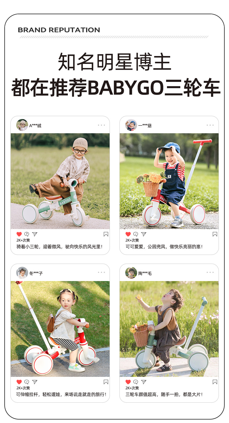 商品名称:BABYGO多功能三轮车脚踏车平衡车宝宝小孩童车带推把三轮车