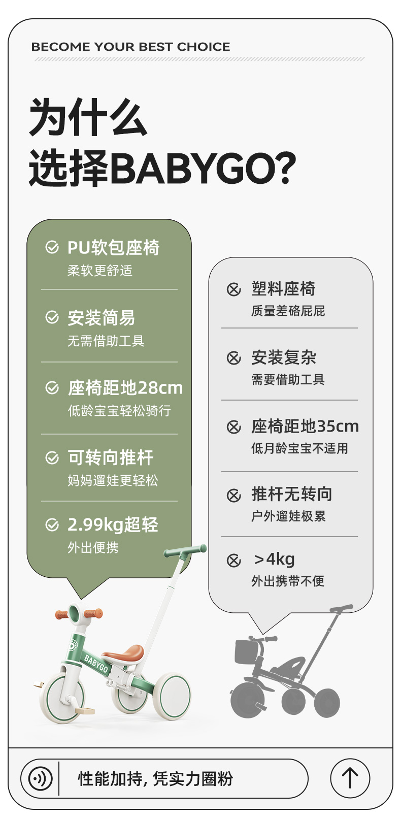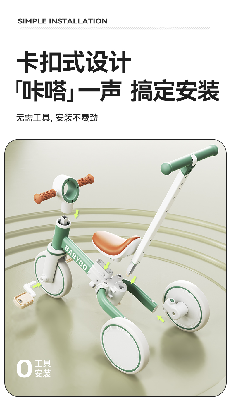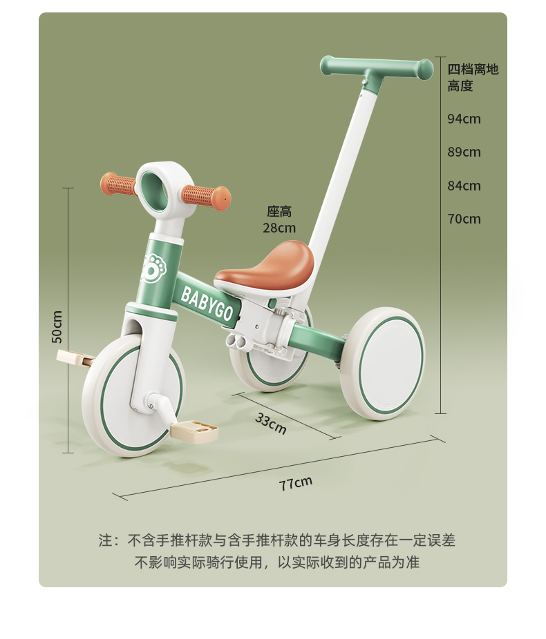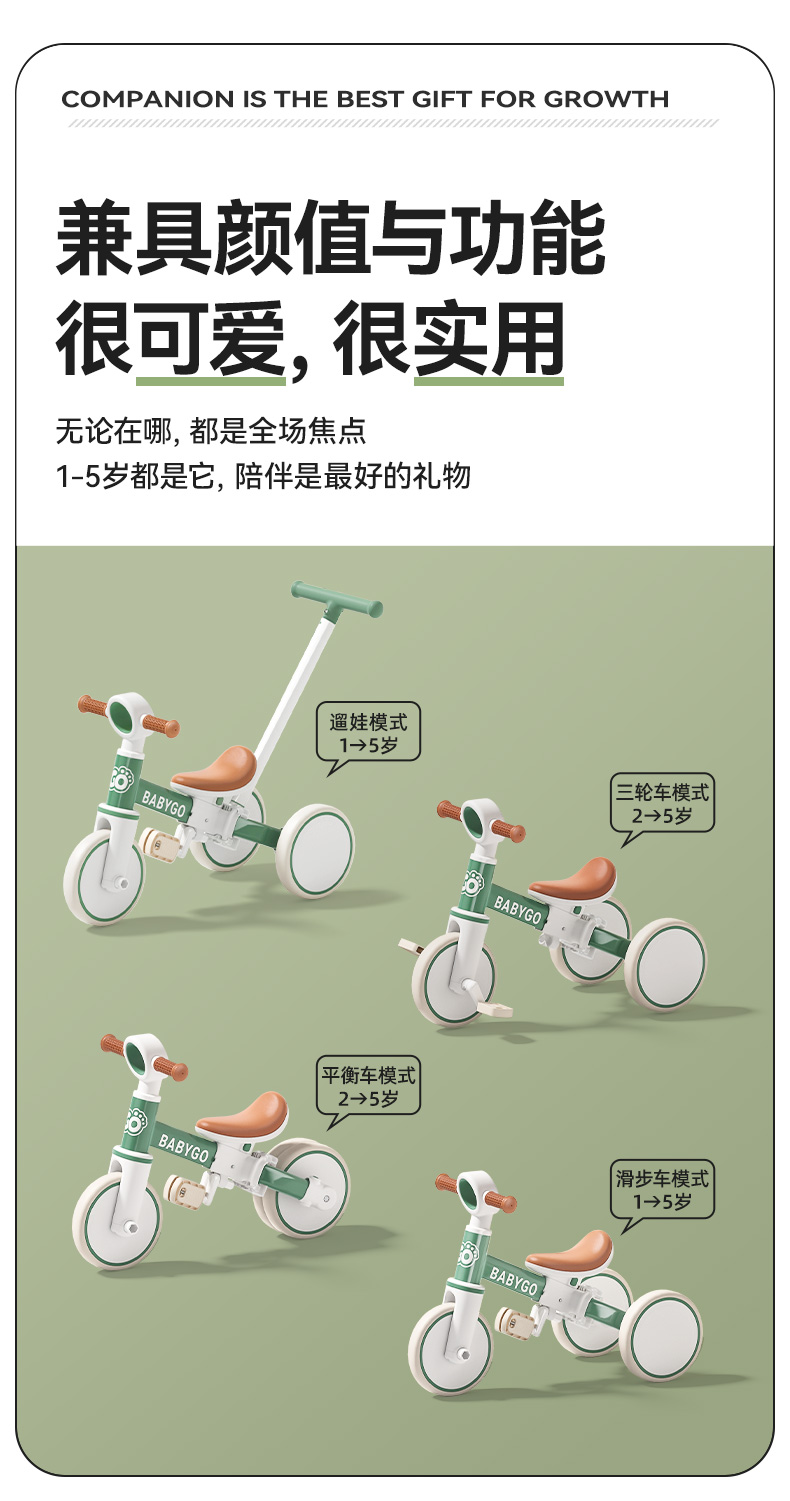 商品名称:BABYGO多功能三轮车脚踏车平衡车宝宝小孩童车带推把三轮车