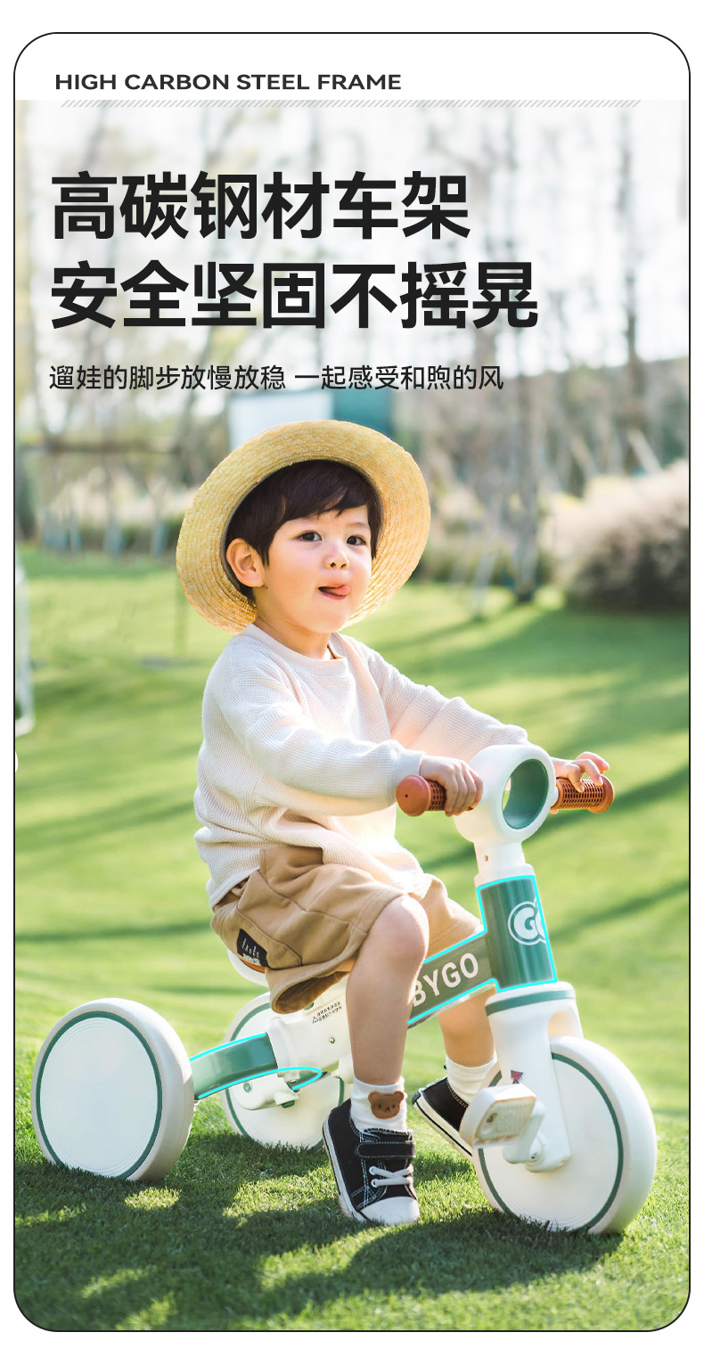 BABYGO多功能三轮车脚踏车平衡车宝宝小孩童车带推把三轮车