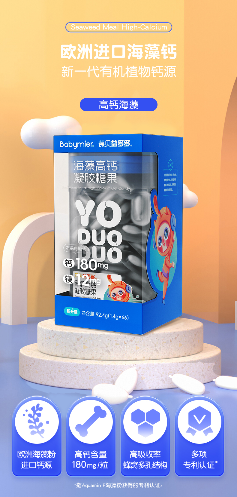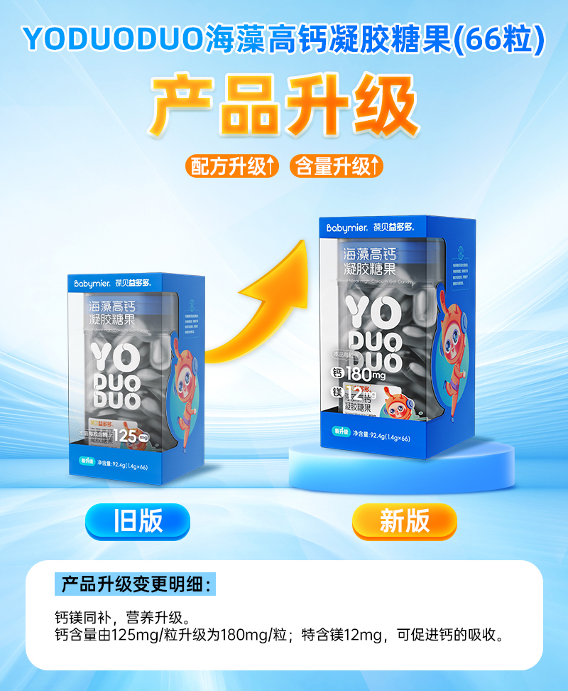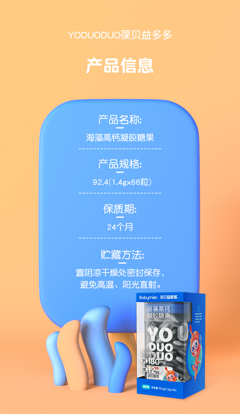 商品名称:【升级180mg】贝蜜儿YODUODUO葆贝益多多海藻高钙儿童进口海藻钙液体钙软胶囊非乳钙片66粒