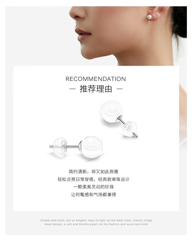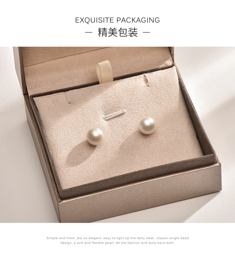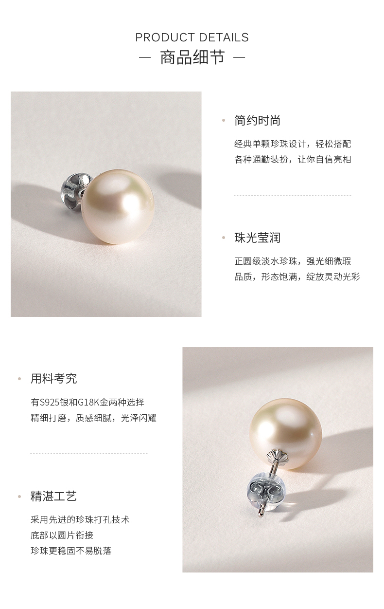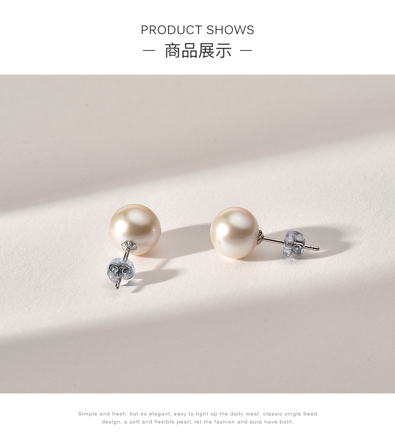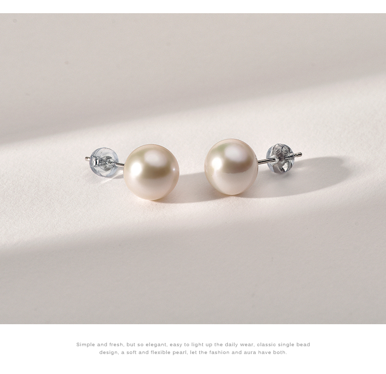 商品名称:京润珍珠 浅愿G18K金珍珠耳钉8-8.5mm白色圆形百搭耳钉