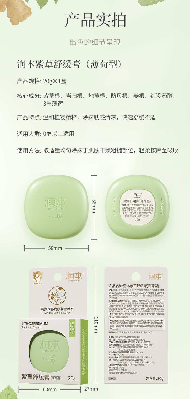 商品名称:【一件起批】润本婴儿专用紫草膏宝宝蚊虫叮咬舒缓跳蚤咬蚊子蚊虫叮咬舒缓膏20g