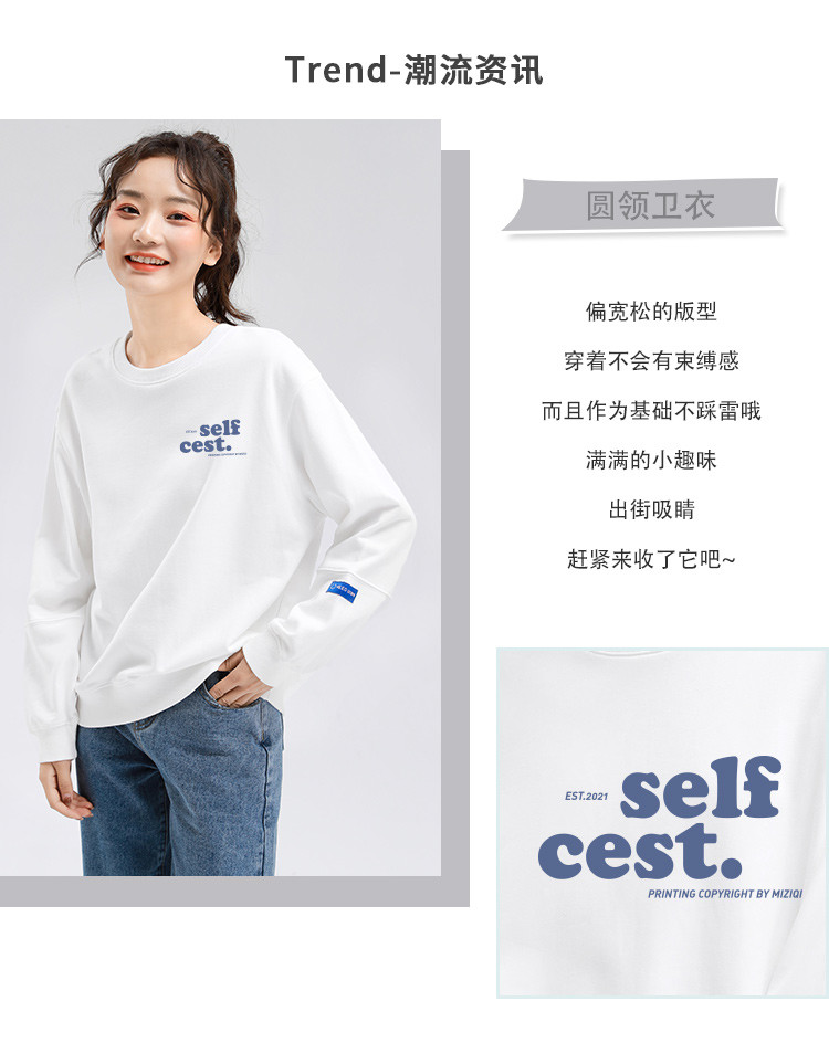 商品名称:米子旗女式卫衣外套上衣女春秋潮流字母印花休闲时尚宽松 205082