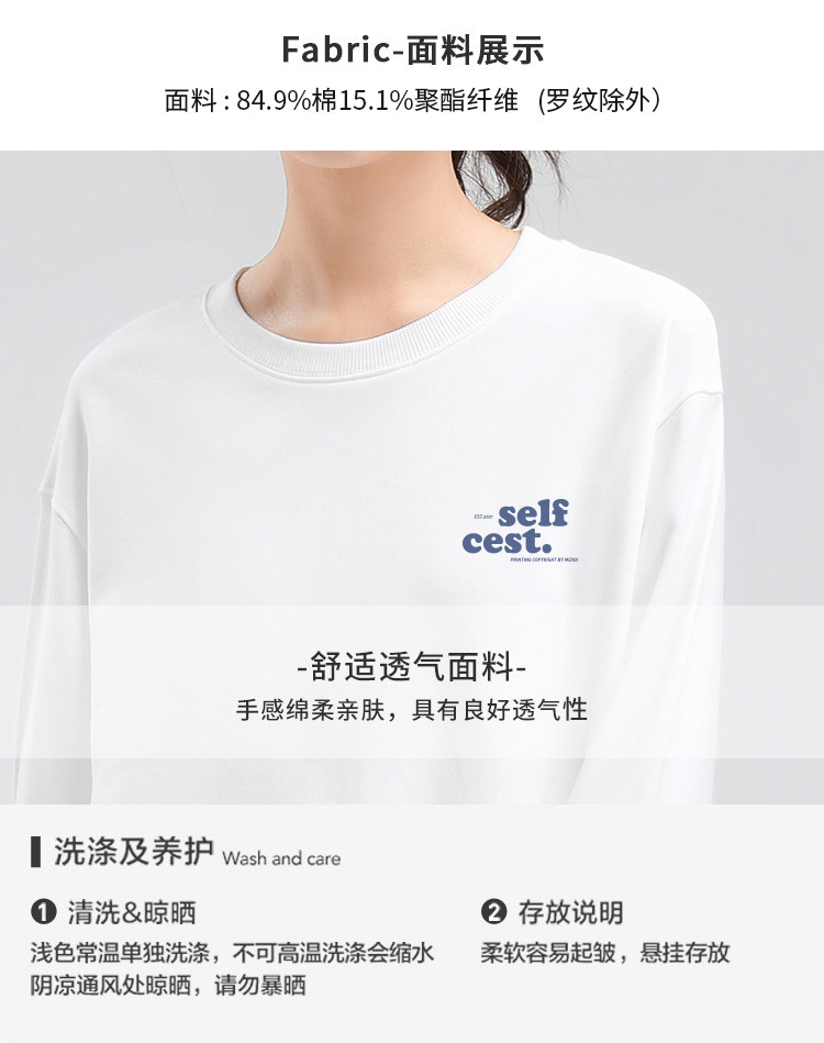 米子旗春秋款女式卫衣外套字母印花百搭圆领长袖短款上衣女 861914