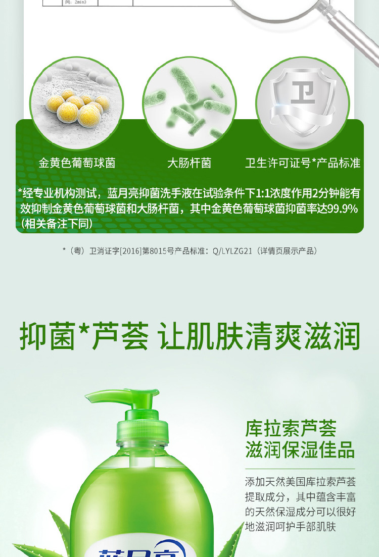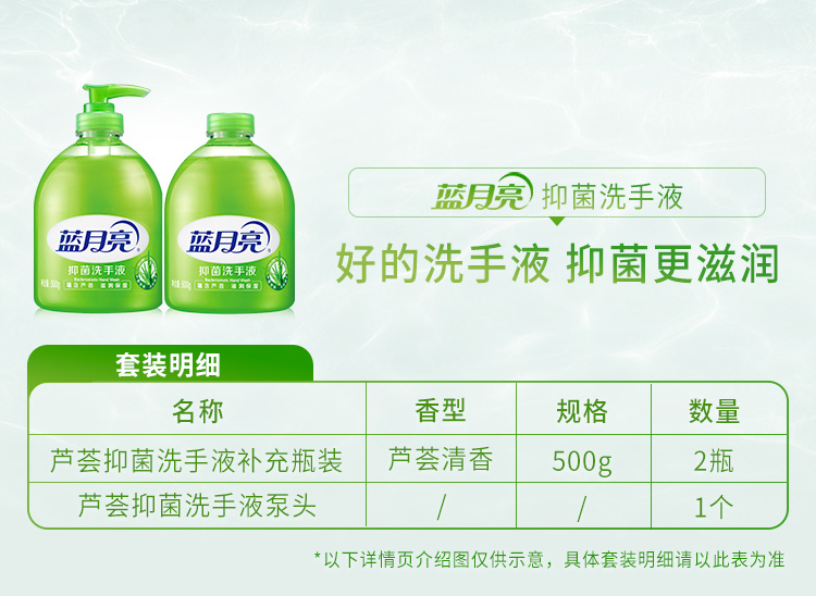 商品名称:【蓝月亮】芦荟洗手液(瓶500g+瓶补500)组成人泡沫凝胶洗手液