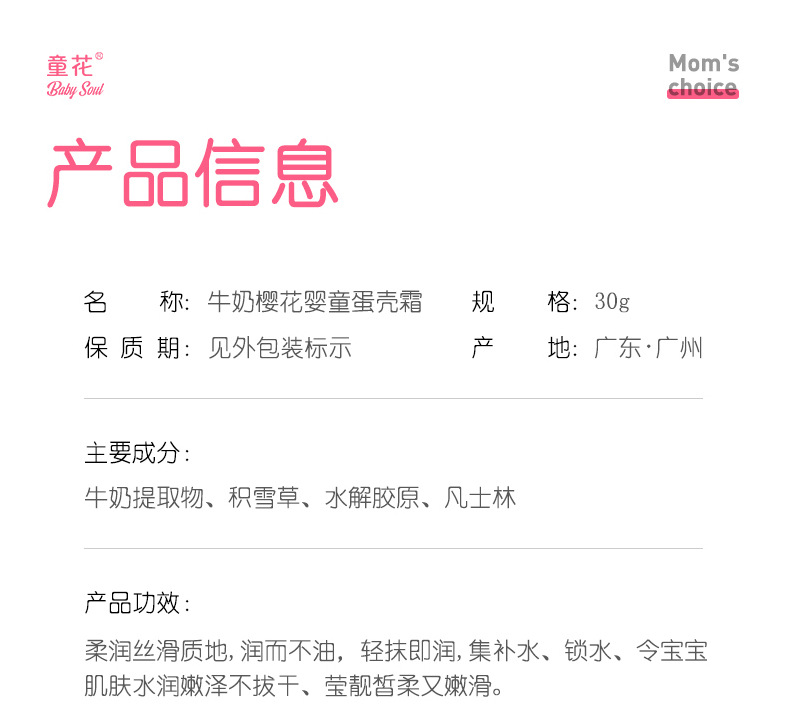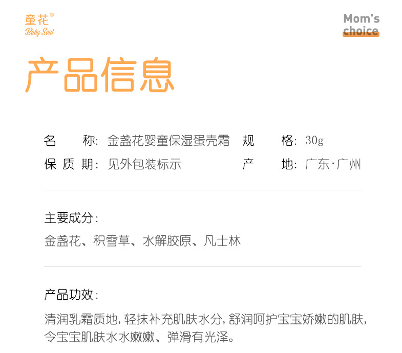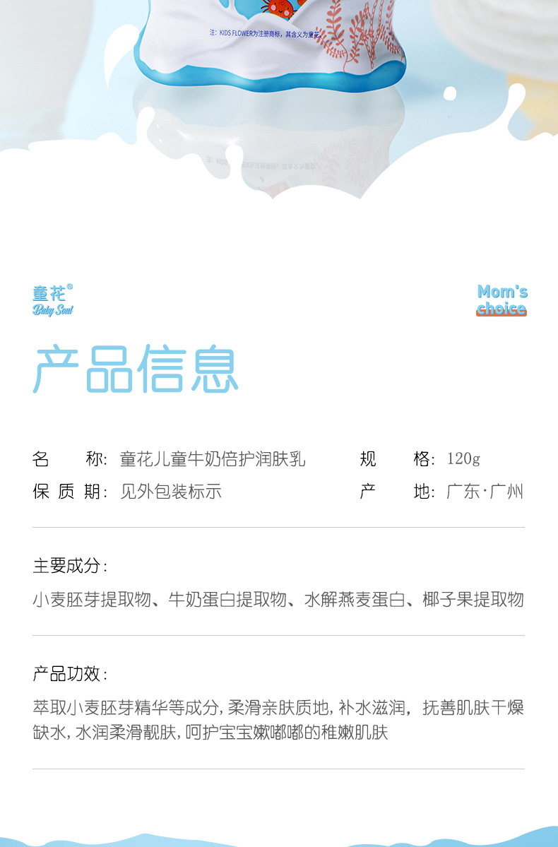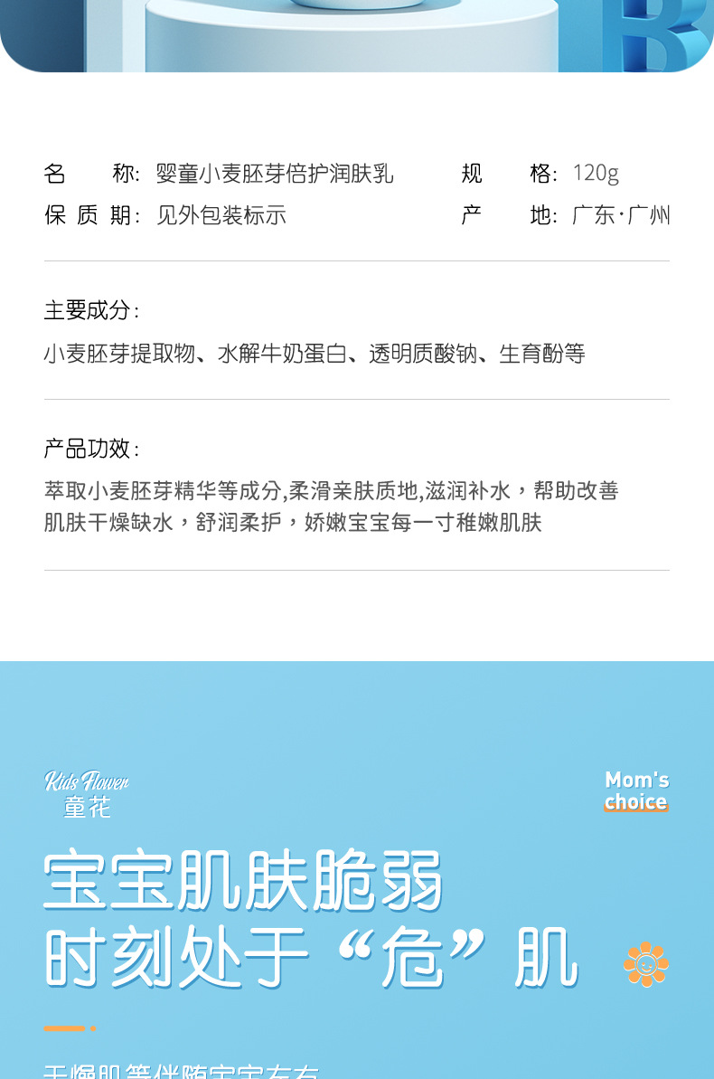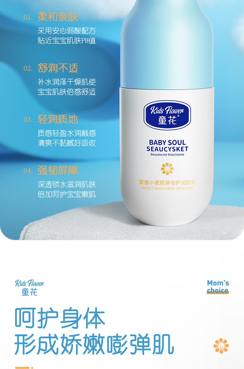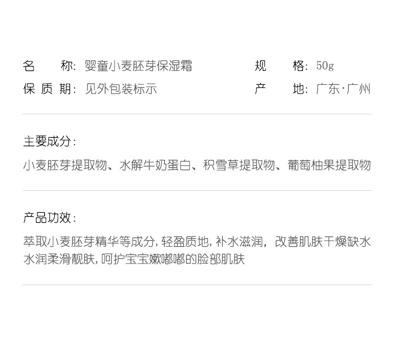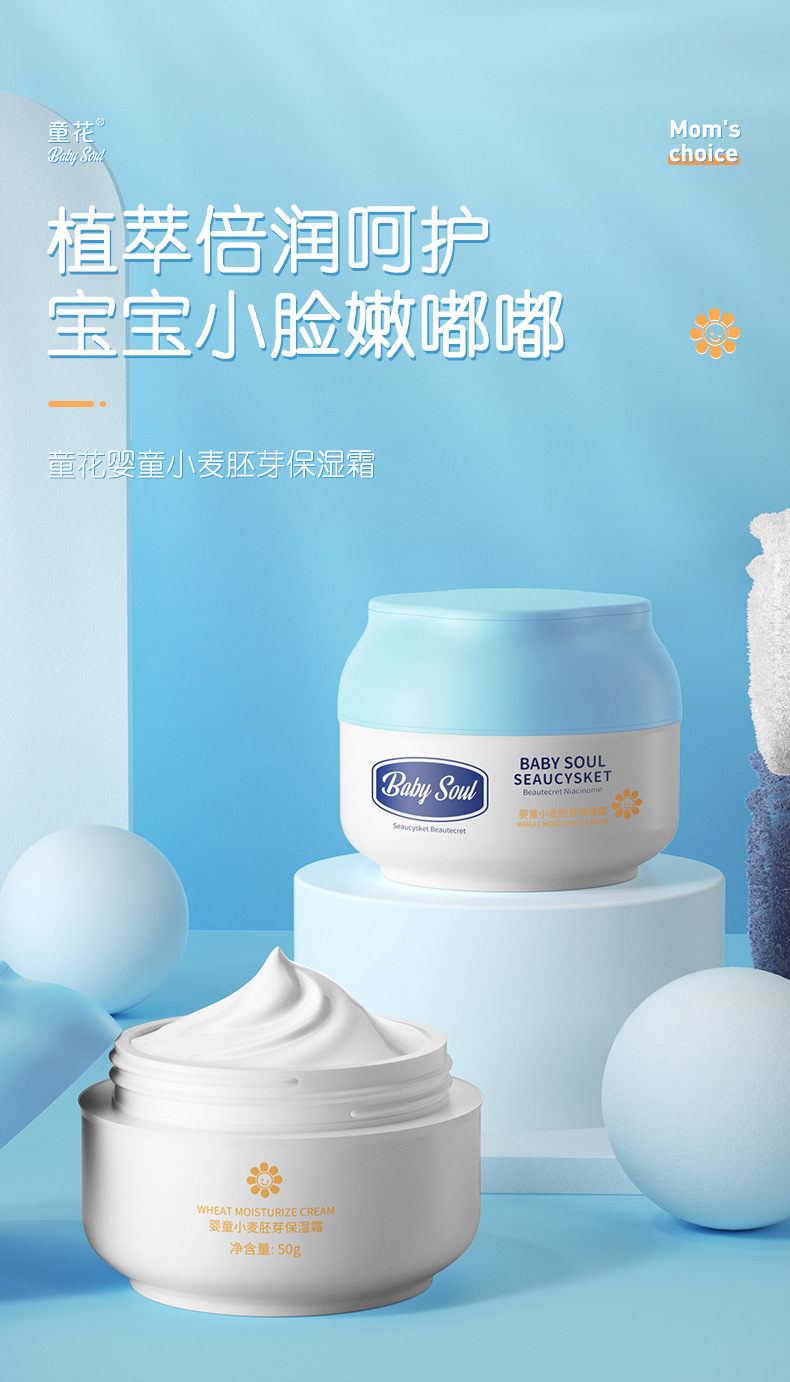 商品名称:童花面霜婴儿面霜身体乳小麦胚芽保湿霜儿童补水保湿滋润肤乳液清爽宝宝儿童面霜护肤